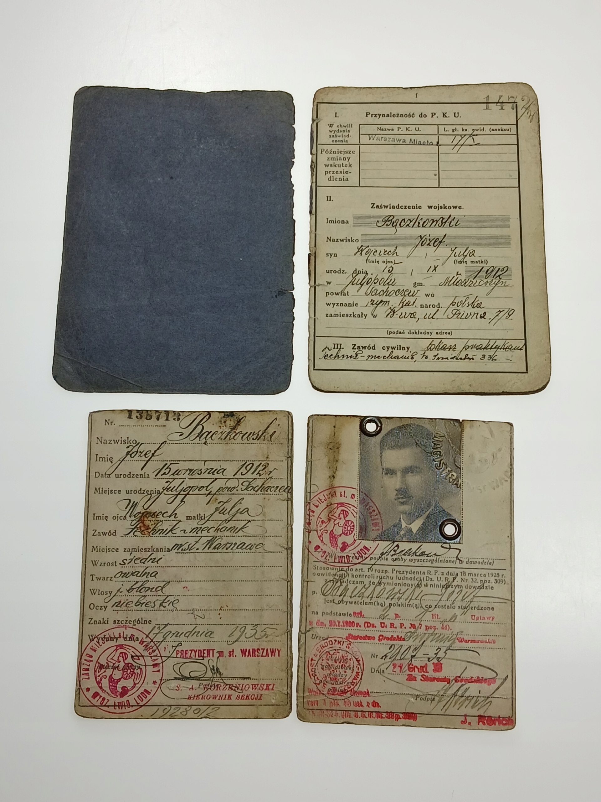 ПОСВІДЧЕННЯ ОСОБИ ПЛЮС ВІЙСЬКОВА ДОВІДКА ВАРШАВА 1935
