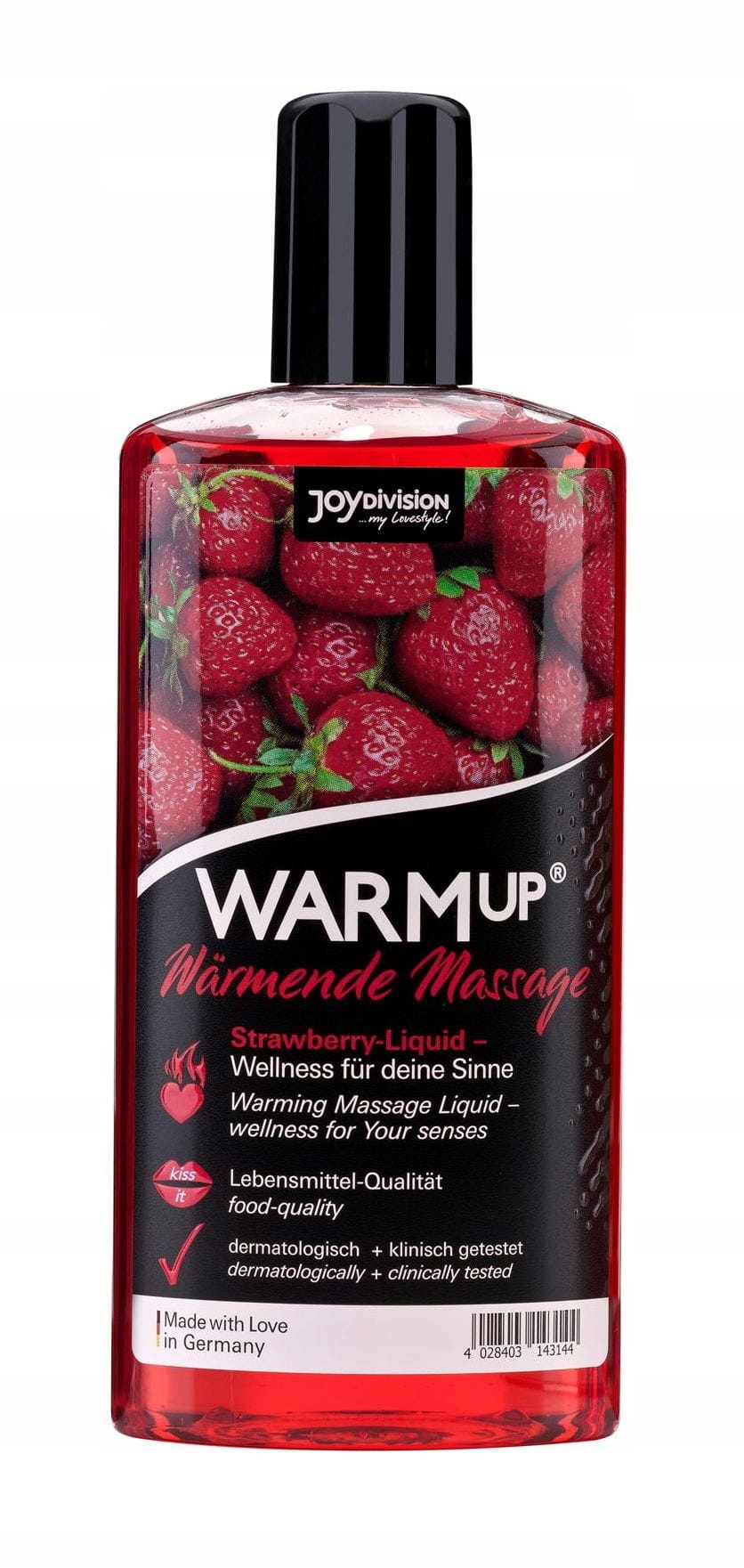 полуниця Joydivision Warmup -це нерозумне масажне масло, розроблене для забезпечення дивовижних переживань із запахом солодкої полуниці з магічним потеплінням, який активується під час сеансу масажу та забезпечує всі задоволення духовної близькості під час приклею.