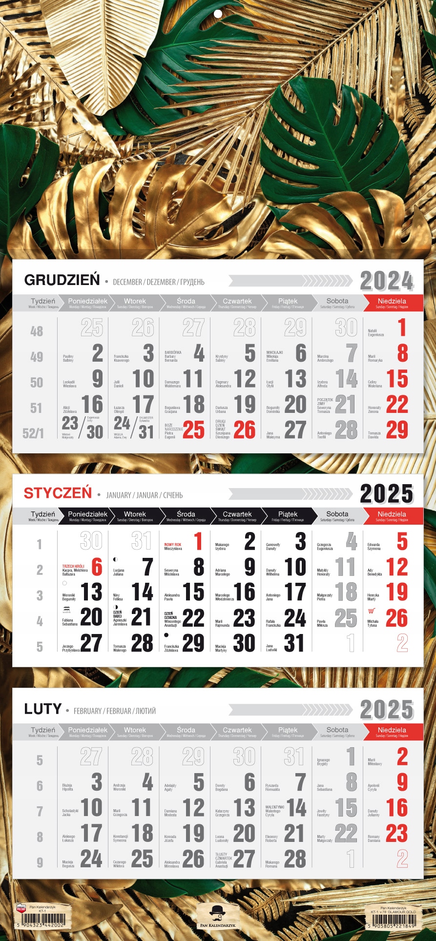 - Три набори класичних календарів із розсувним вікном.