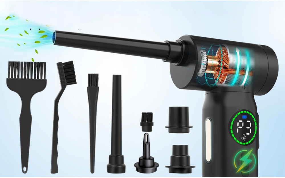 🍃 Миттєво відчуйте чистоту завдяки пилососу зі стисненим повітрям, який видаляє 99% пилу лише за 1 секунду. Завдяки потужній технології двигуна, електричний повітряний пиловловлювач, максимальна швидкість 110 000 об/хв очищає кожен куточок. Повітряний пилозбірник є найкращим очисним артефактом, який є хорошою заміною балону зі стисненим повітрям.