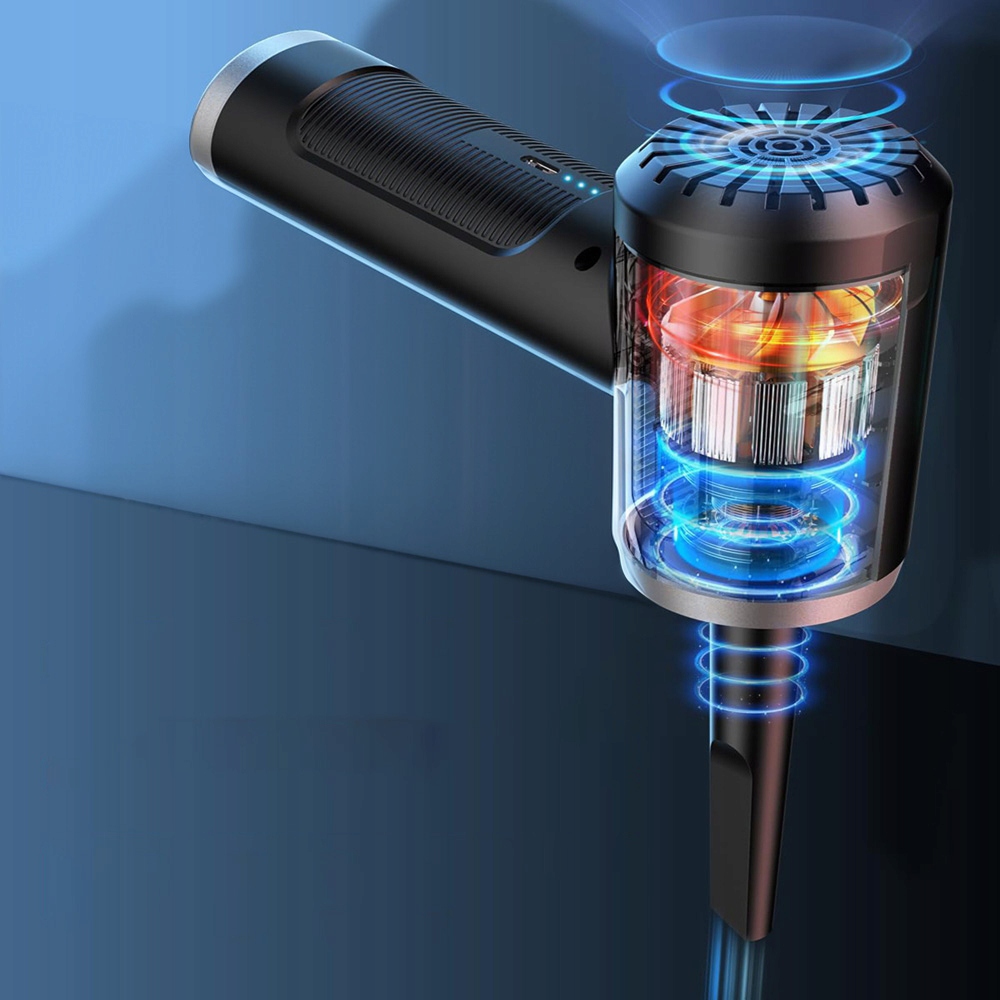 - Вбудований акумулятор на 6000 мАг забезпечує безперервне очищення протягом 20 -40 хвилин. Його можна підключити до комп'ютера, зарядного пристрою для телефону, автомобільного зарядного пристрою чи іншого адаптера. Він має світлодіодний індикатор, який нагадує вам. Червоне світло вказує на те, що він заряджається, синє світло завжди вказує на те, що він працює, а зелене світло завжди вказує на те, що він повністю заряджено