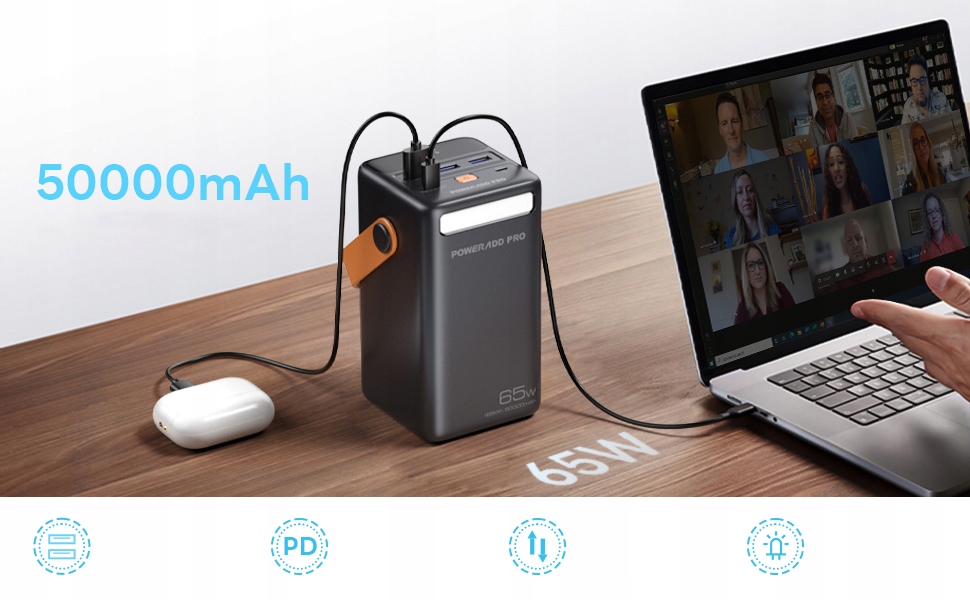 - This powerbank with a capacity of 50,000 mAh with a LED display is suitable not only for all mobile phones, most laptops drones, etc., but also for low power consumption devices, such as Airpods, Bluetooth headphone sets, intelligent watches, etc.