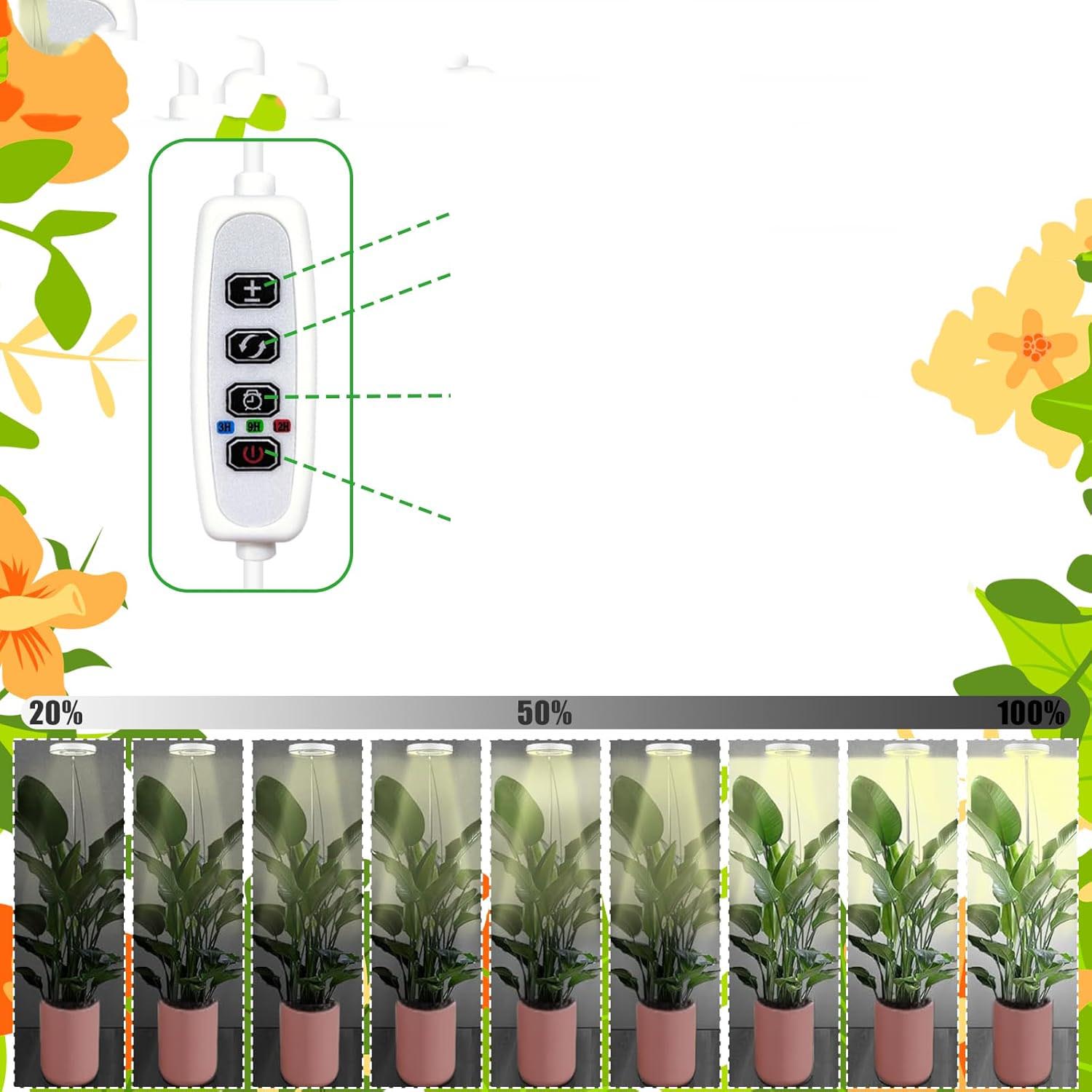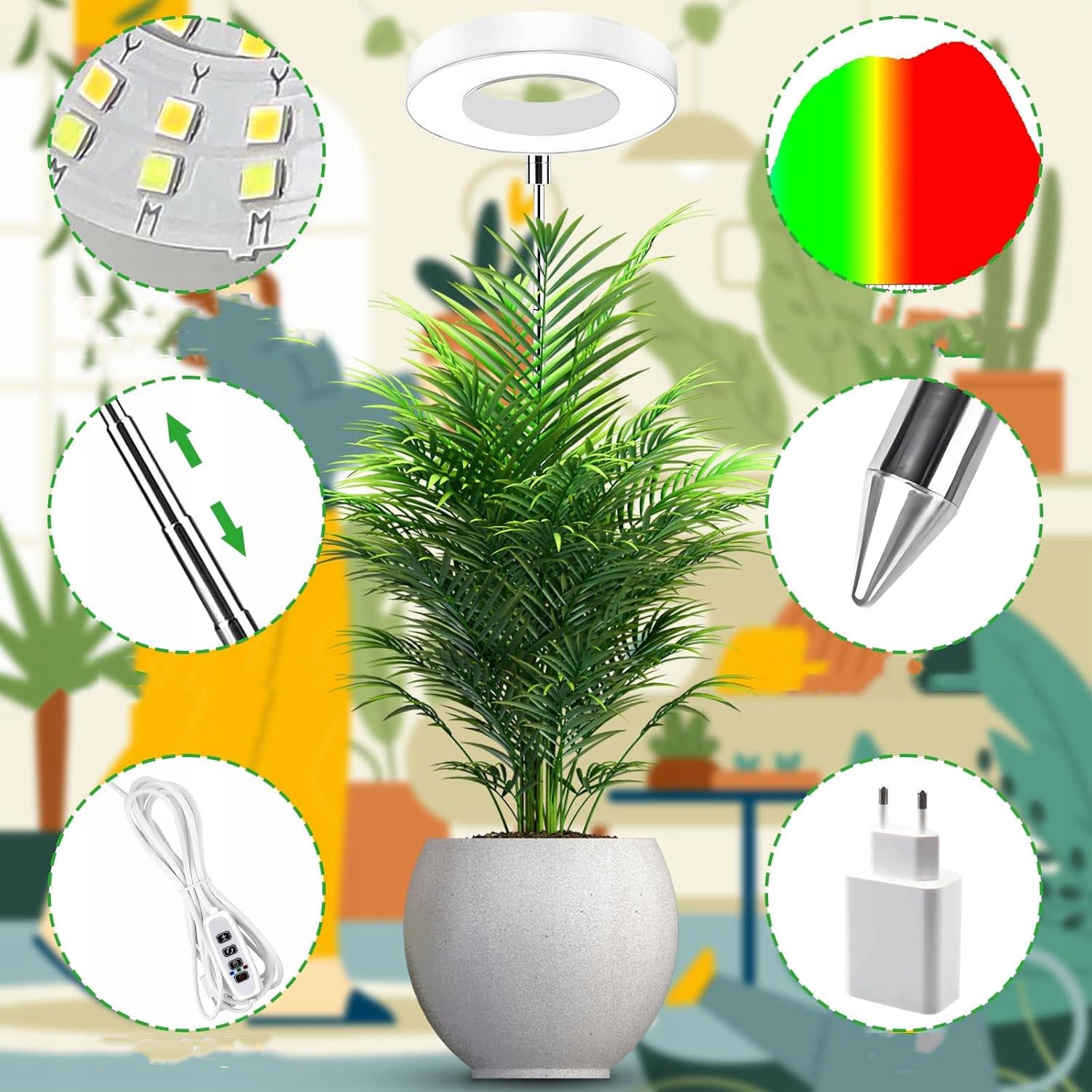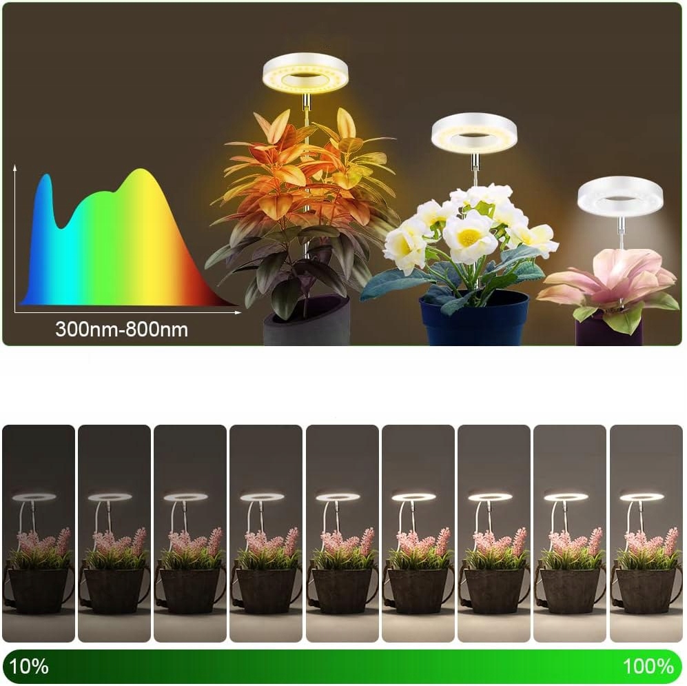 Наша лампа для рослин з повним спектром, макет світлодіодів у колі, завдяки якому рослини краще поглинають світло і стають щасливішими. З трьома режимами освітлення (біле світло, теплий колір, теплий білий), він також має 9 налаштувань яскравості ZINGLE (10% - 100%). Гнучка схема дозволяє знайти найбільш підходящої яскравості для рослин, підходящих для всіх типів бонсай та садових рослин, розмарину, орхідеї тощо.