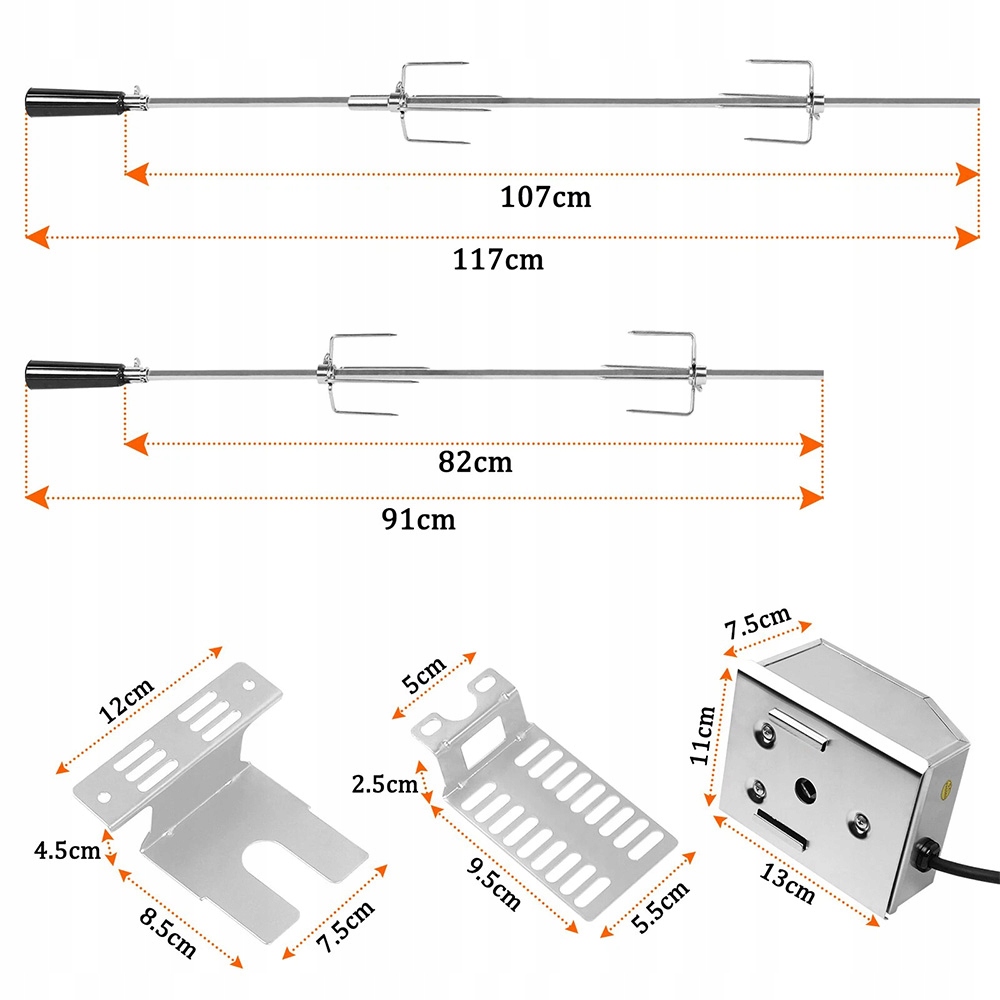 4 Тверда коса з нержавіючої сталі має розміри довжиною близько 107 см і діаметром 8 мм, що робить його загально сумісним з багатьма газовими або вуглецевими грилями та курцями.