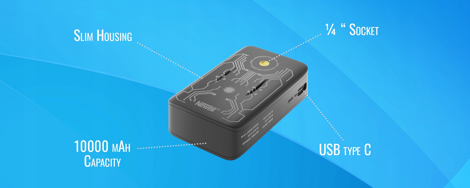 Power Bank Newell KM001 оснащені стандартною жіночою штативною ниткою 1/4 ". Крім того, він також має адаптер холодної стопи, що дозволяє його зручно встановити безпосередньо на санях камери. Newell KM001 - це зосереджено на мобільності та компакт. камери.