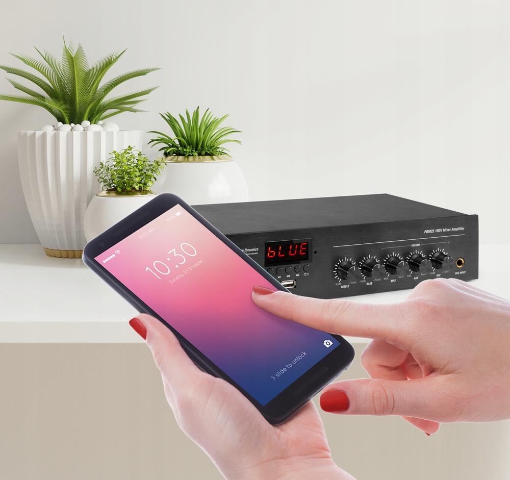 який характеризується простим керуванням, відмінною продуктивністю та високим ступенем надійності. Підсилювач ідеально підходить для невеликих установок. Підсилювач оснащений Bluetooth, вбудованим MP3-плеєром і радіо. Ви можете підключити зовнішнє аудіоджерело до підсилювача через лінійний вхід на задній панелі. PDM25 оснащений лінійним виходом для використання кількох підсилювачів. Окрім музичної системи, PDM25 також може чудово служити основою для меншої звукової системи завдяки мікрофонному входу.