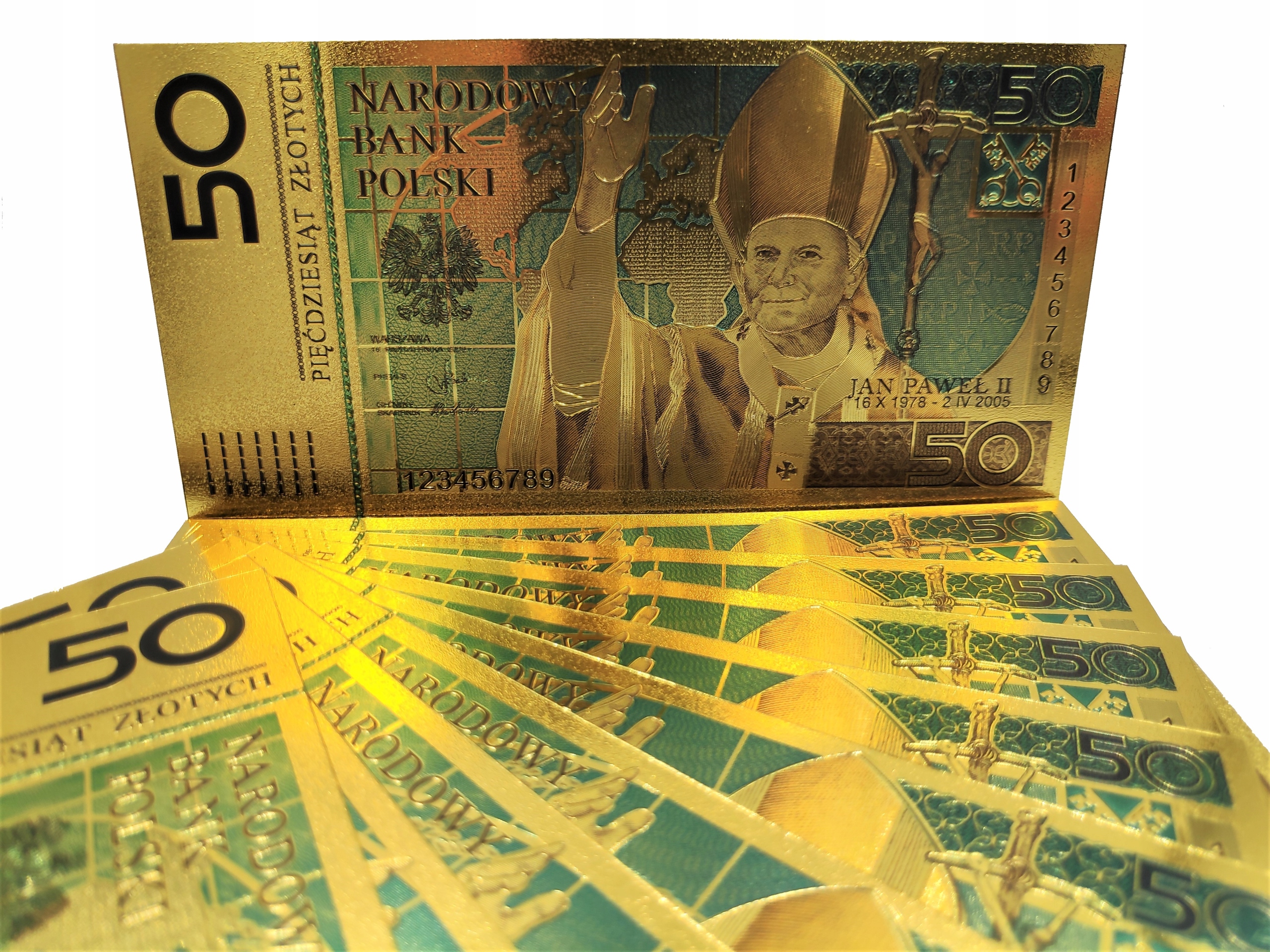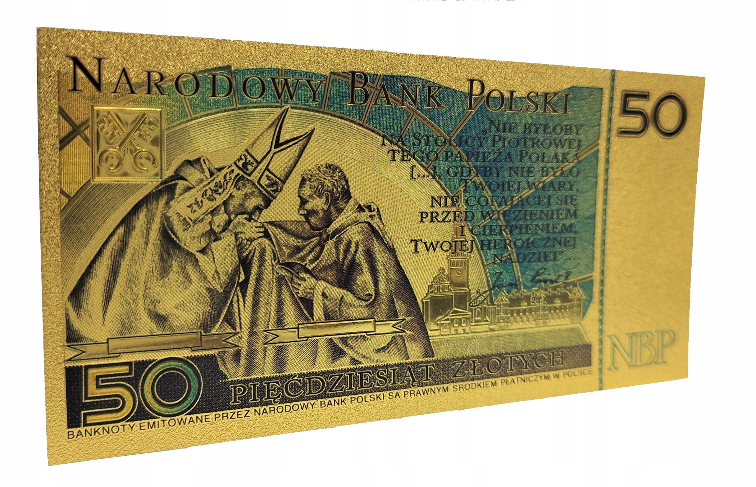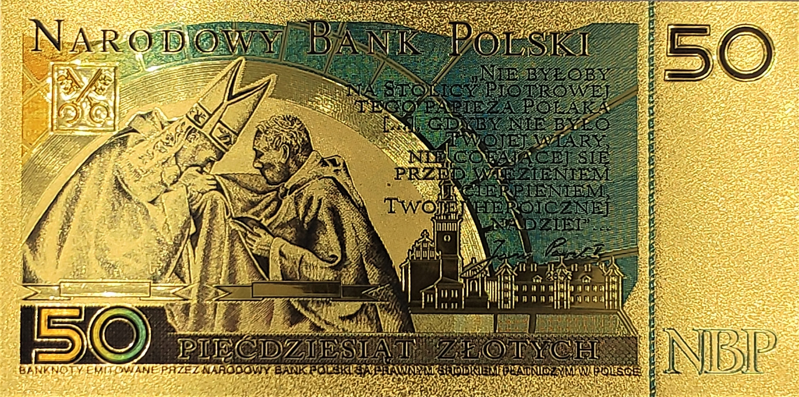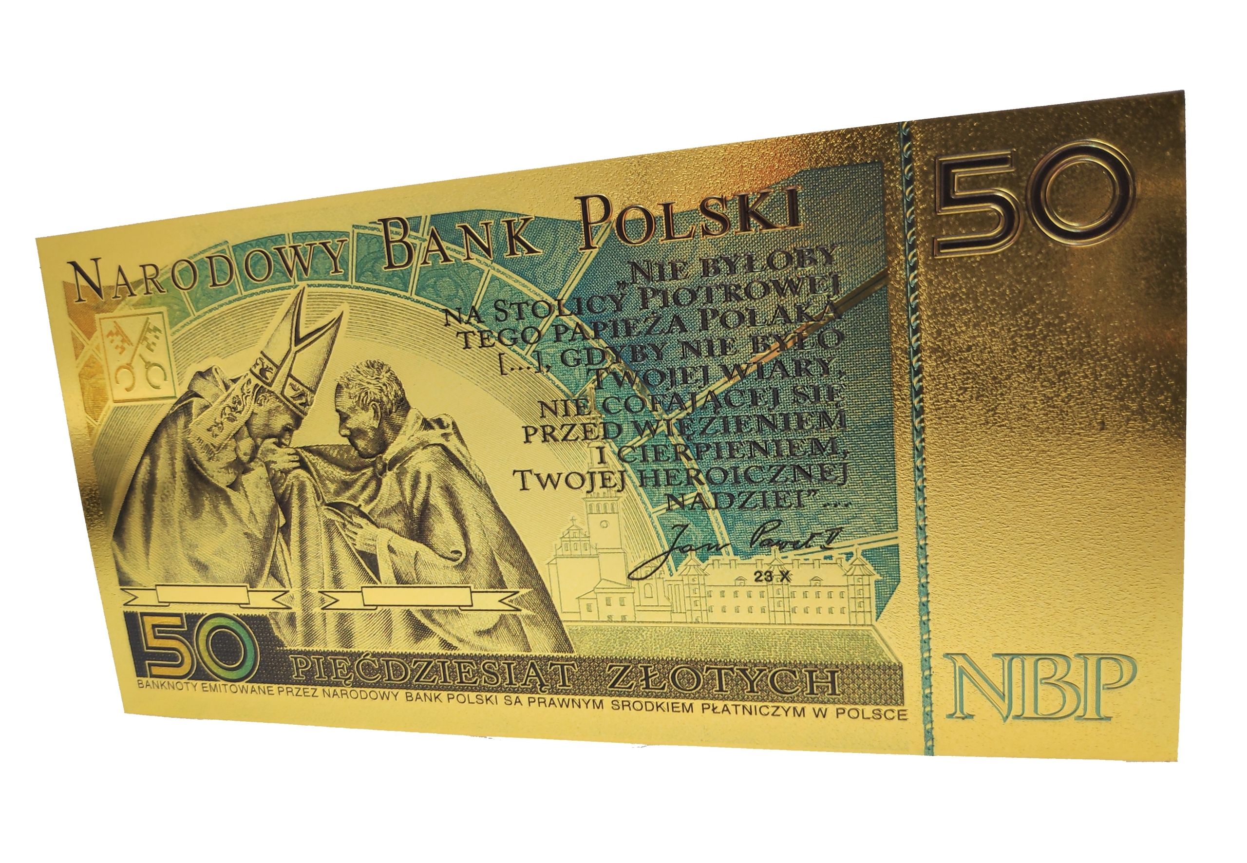 Позолочена колекційна банкнота номіналом 50 злотих Івана Павла ІІ