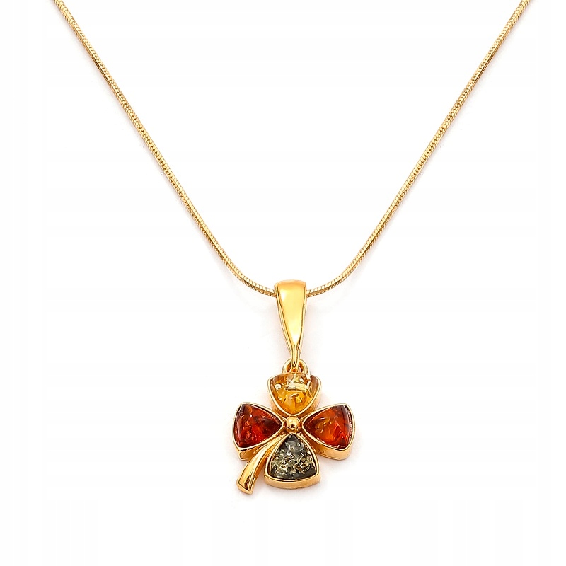 ПОЗОЛОЧЕНИЙ ПІДВІСОК КОНЮШИНА З КОЛЬОРОВИМ БУРШТИНОМ
