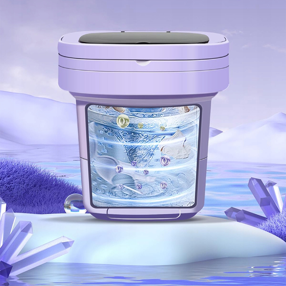 нашу мобільну пральну машину можна скласти та зберігати, щоб заощадити місце. Завдяки ємності 6,5 л процес прання відбувається безшумно та економить воду, енергію та час. Ідеально підходить для подорожей, гуртожитків, караванів і кемпінгу.