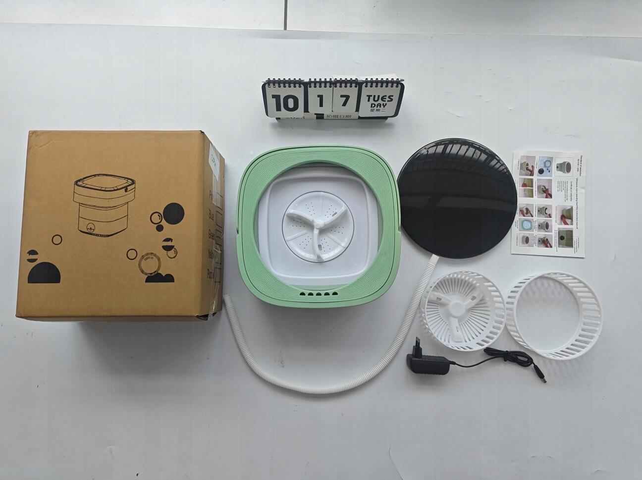 Ця маленька пральна машина машина розроблена таким чином, що її можна скласти в невелику валізу, що полегшує транспортування. Коли ви хочете випрати свій одяг, просто розгорніть пральну машину та покладіть свій одяг. Він важить менше 3 кг, що робить його ідеальним для подорожей.