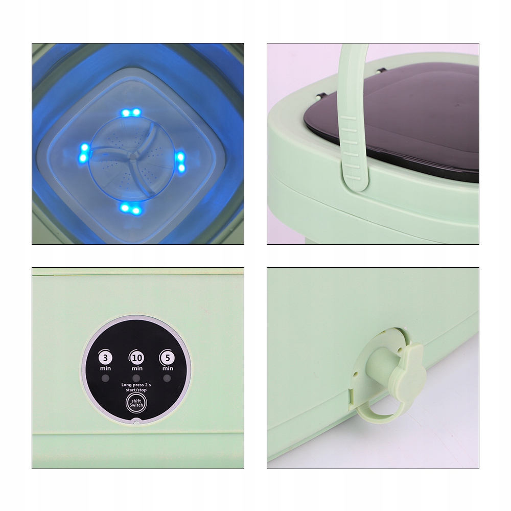 Ця міні-пральна машина пропонує повний спектр ручного чищення та точні швидкості прання для ефективного очищення. З синім світлом ідеально підходить для прання дрібних речей, таких як дитячий одяг, нижня білизна та шкарпетки, зберігаючи здоров’я вас і вашої родини! (Примітка: не рекомендується чистити джинси, довгі спідниці, халати та інший великий одяг)
