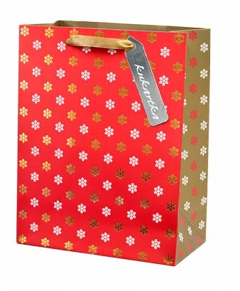 Елегантний подарунковий пакет з друком білих та золотих сніжинок. Сумка з товстого паперу. У ньому є декоративний кулон, щоб увійти до подарунка для себе.