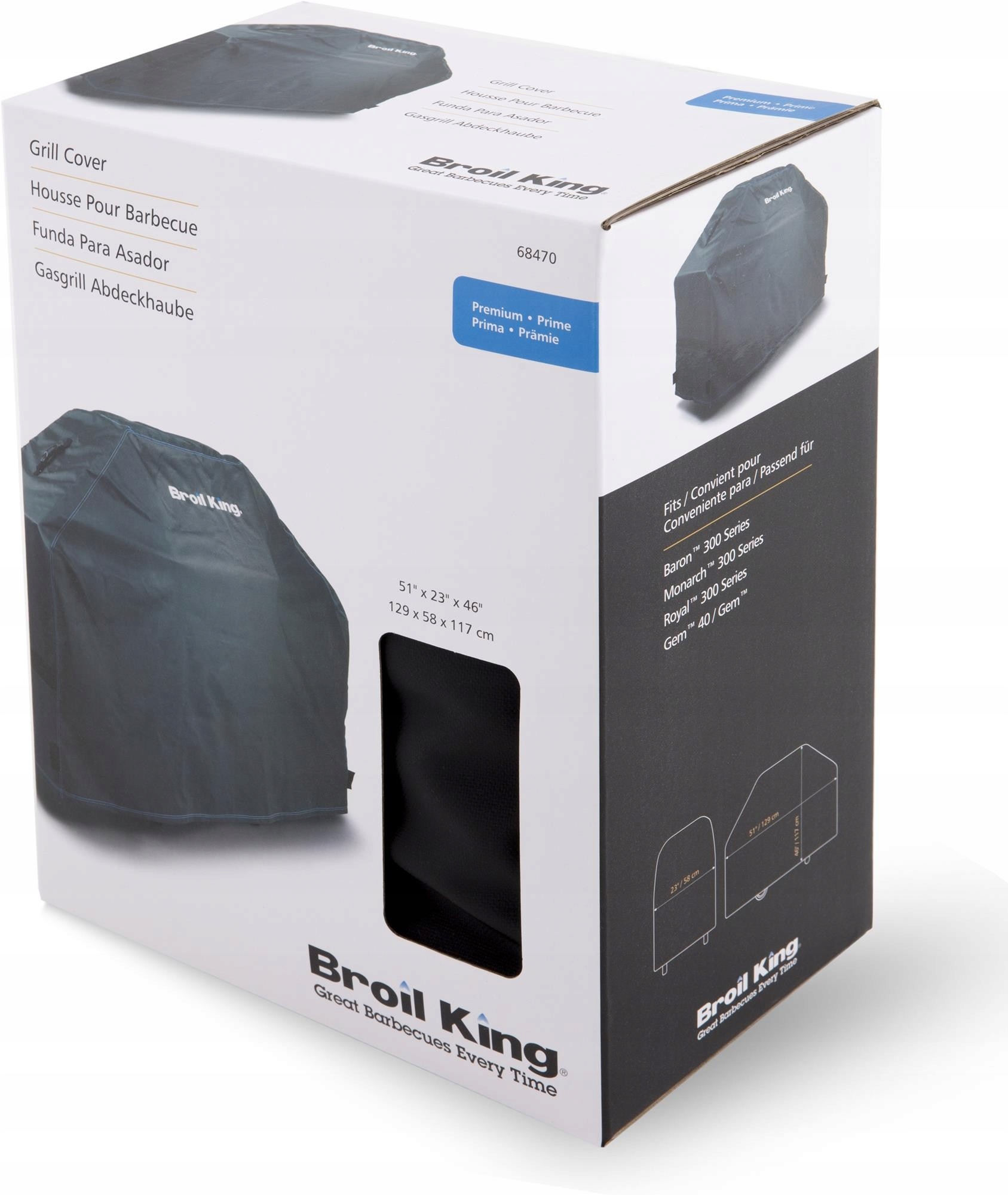 Преміум -обкладинка Broil King була виготовлена з довговічної тканини з ПВХ (900 x 900d), обрізаної міцними синіми нитками, з вишитою логотипом Broil King®. Обкладинка оснащена отворами вентиляції, що дозволяє належним чином циркуляції повітря та запобігти накопиченню вологи. Ручки, виготовлені з гуми, полегшують надягання та зльоту, а система кріплення дозволяє встановити кришку гриля. Він забезпечує захист від року від погодних умов, таких як дощ, сніг, вітер чи сонце. Обкладинки Broil King мають 5-річний гарантійний період. >
