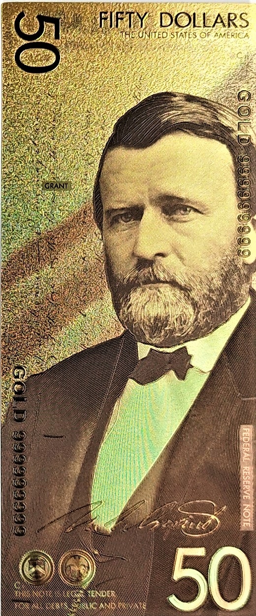 Красива колекційна банкнота номіналом 50 доларів із зображенням 18-го президента Сполучених Штатів Уліса Гранта.