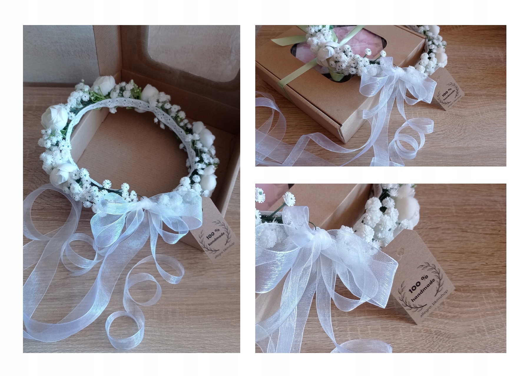Основним елементом тут є квіти краснухи з додаванням зелених, ніжних листків. Зкаканий вінок - це елегантна стрічка, як мереживо (залежно від наявності оптового продавця, мереживо - біле або крем). Продукт має корективи у вигляді прив'язки стрічки - прив’язаний на лук. Вінок закінчений елегантними перлами. Стандартний вимір вінка становить близько 52 см +-.