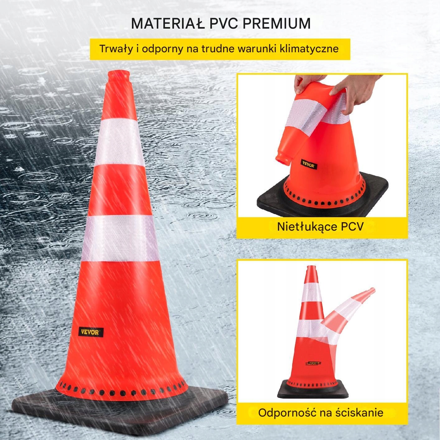 Ці дороги з висотою 75 см виготовлені з гнучкого та міцного матеріалу ПВХ. Вони стійкі до вологи, олії, екстремальних температур та складних погодних умов. Навіть при температурі від 55 ° C до -20 ° C вони зберігають свою форму.