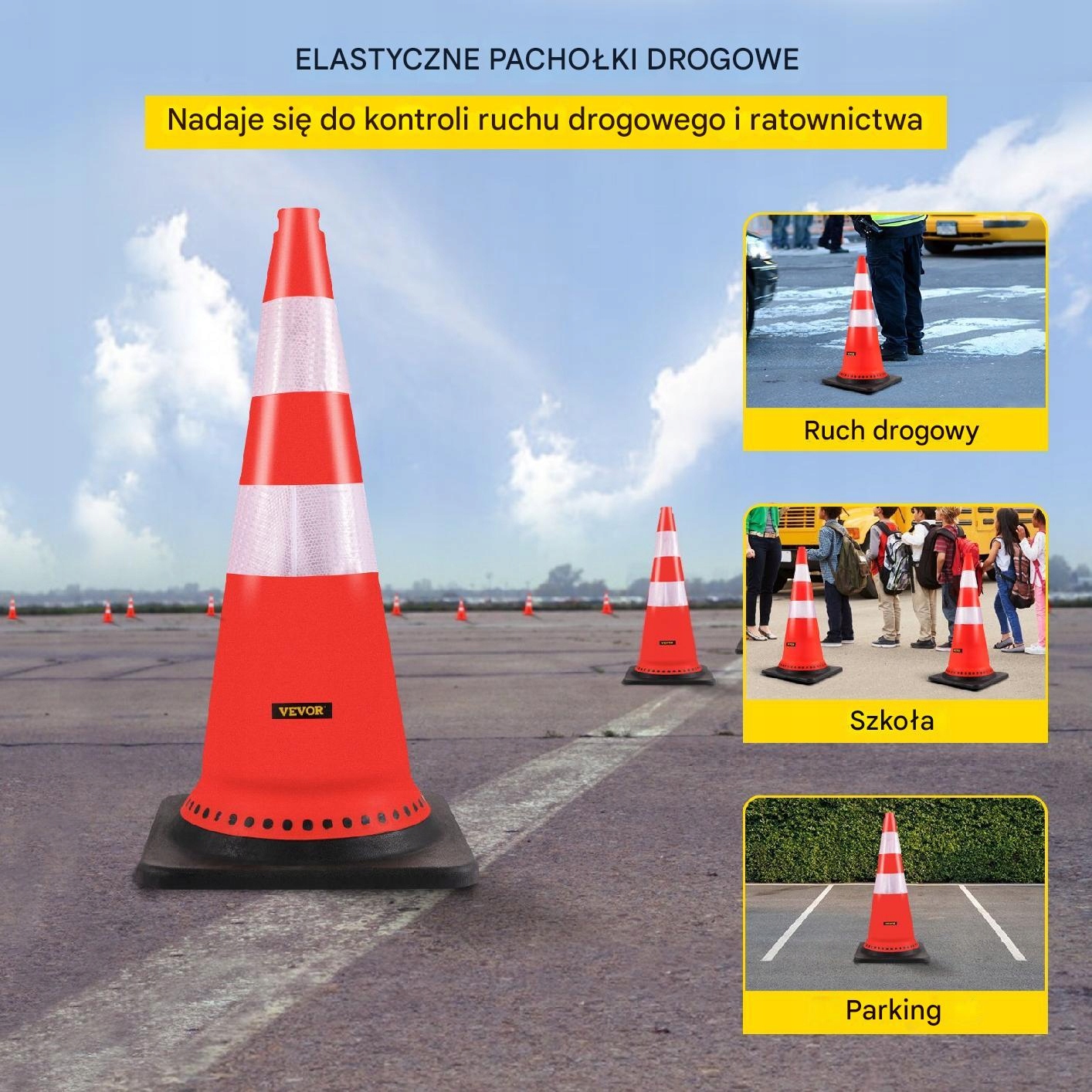 pachołki можна використовувати як у державних, так і в приватних місцях, таких як сади, стоянка, дороги та квадрати. Вони підходять для визначення зон попередження або створення безпечних приміщень для дітей на проїжджих шляхах або ігрових майданчиках.