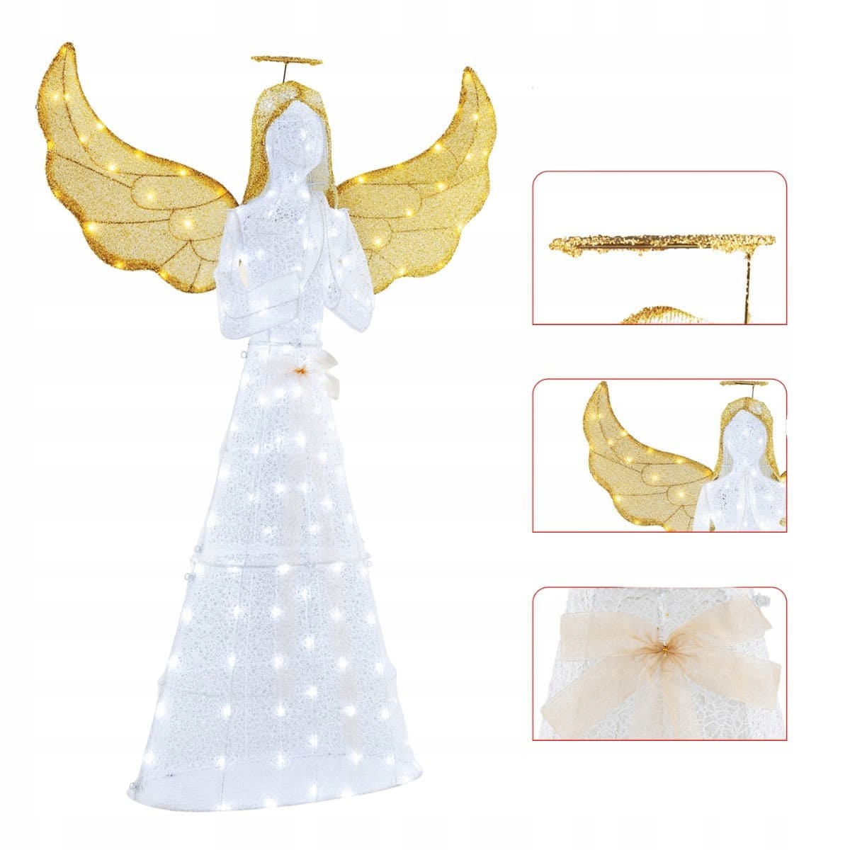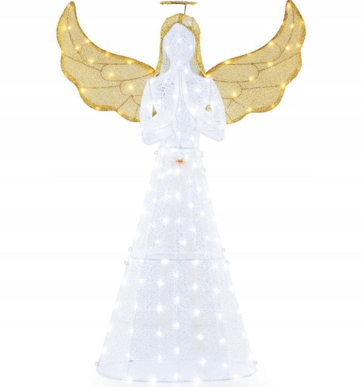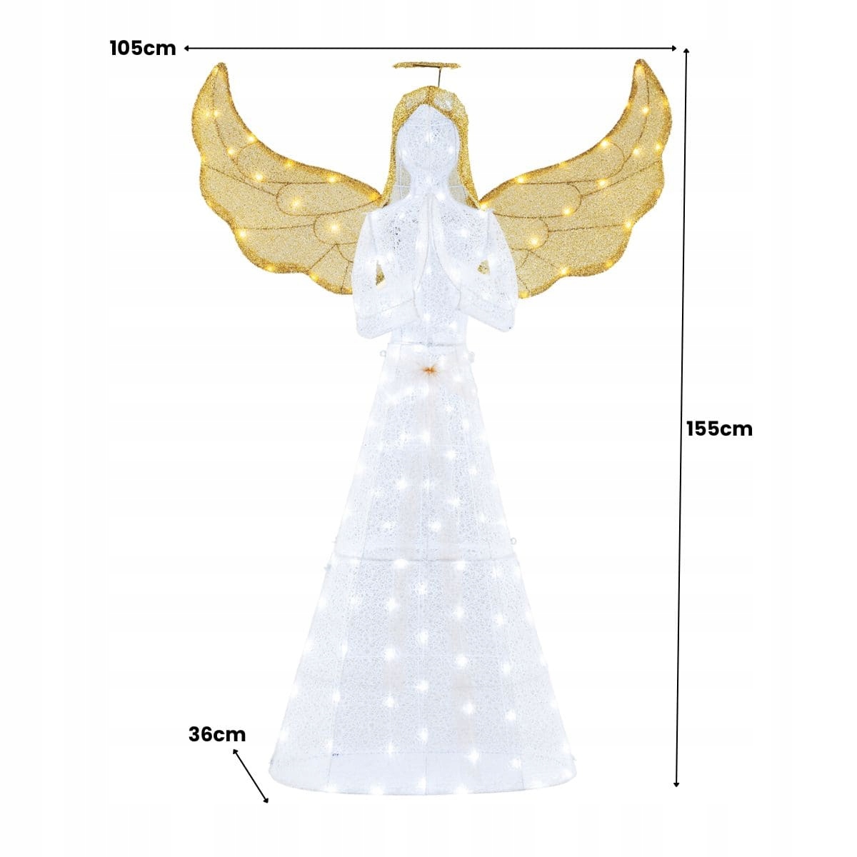 Подаруйте чарівну атмосферу Різдва у свій дім чи сад завдяки вражаючій прикрасі - світлодіодному ангелу висотою 1,55 м. Його тонкий німб і ніжні крильця надають йому елегантності та святкового шарму, роблячи його унікальним декоративним елементом протягом багатьох сезонів.