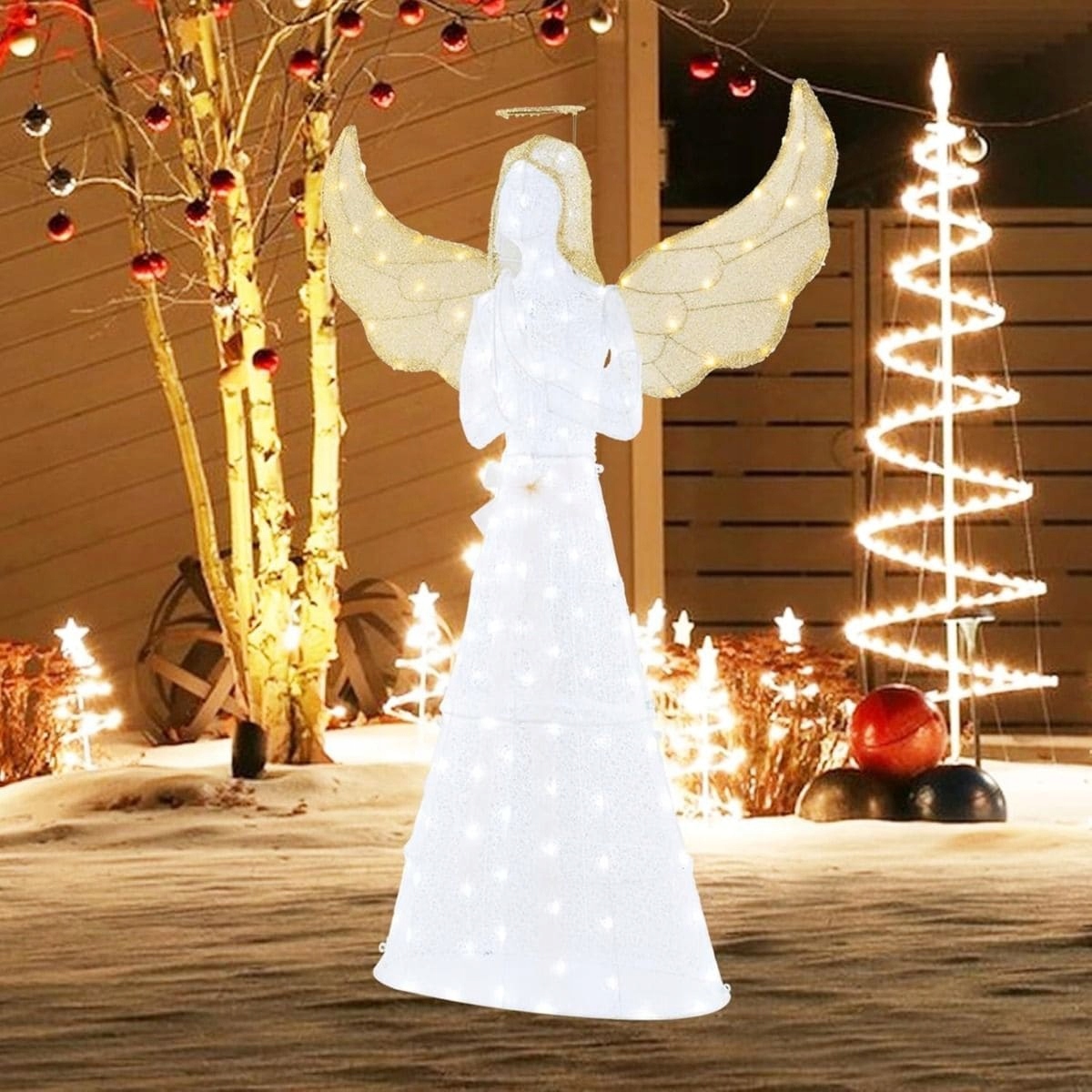 Декорація оснащена 4 міцними кілочками та 20 затискачами, які дозволяють надійно розмістити її на траві, землі чи слизькій поверхні. Ангел залишається стабільним навіть у менш сприятливу погоду.