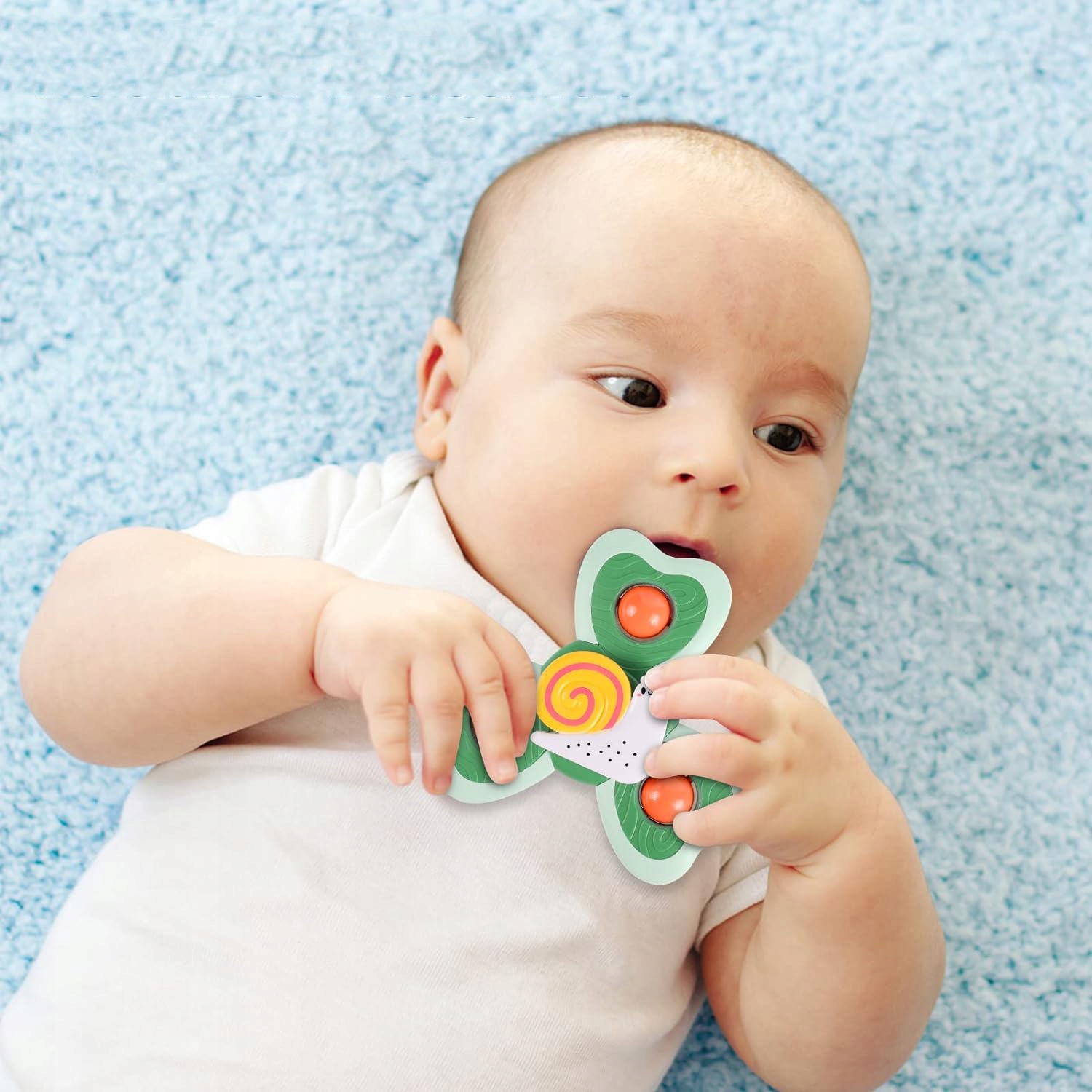 🌈 Барвистий дизайн, що обертається. Наша дитяча іграшка-присоска має яскраві кольори та милі візерунки, які привертають увагу дітей. Прості обертальні рухи забезпечують години задоволення та сприяють сенсорному розвитку.