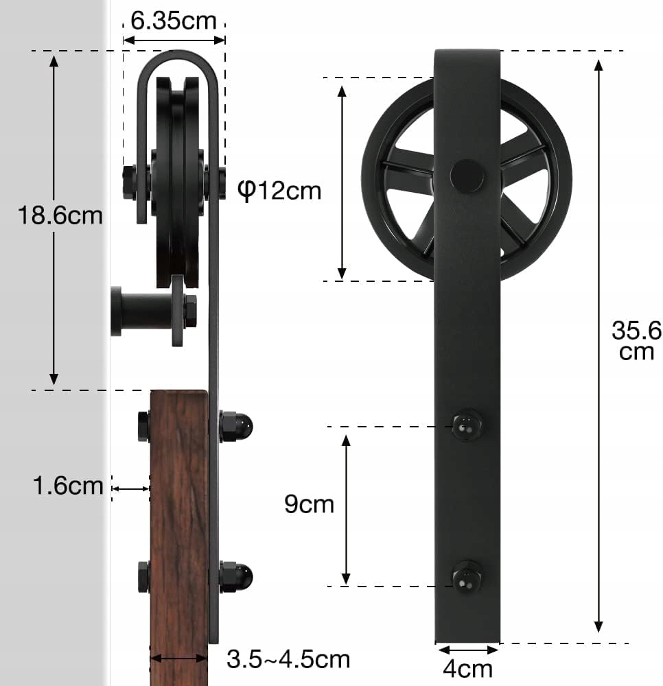 - Високоякісні матеріали: Фурнітура для розсувних дверей Winsoon виготовлена з високоякісної високої температури сталі, покрита невеликим чорним порошковим покриттям, що забезпечує захист від корозії та тривалої краси та міцності. Високостійкі рейки та шківи з міцністю промислового класу витримують навантаження 105 кг. Навантаження. Ідеально підходить для дверних панелей від 3,5 см до 4,5 см.