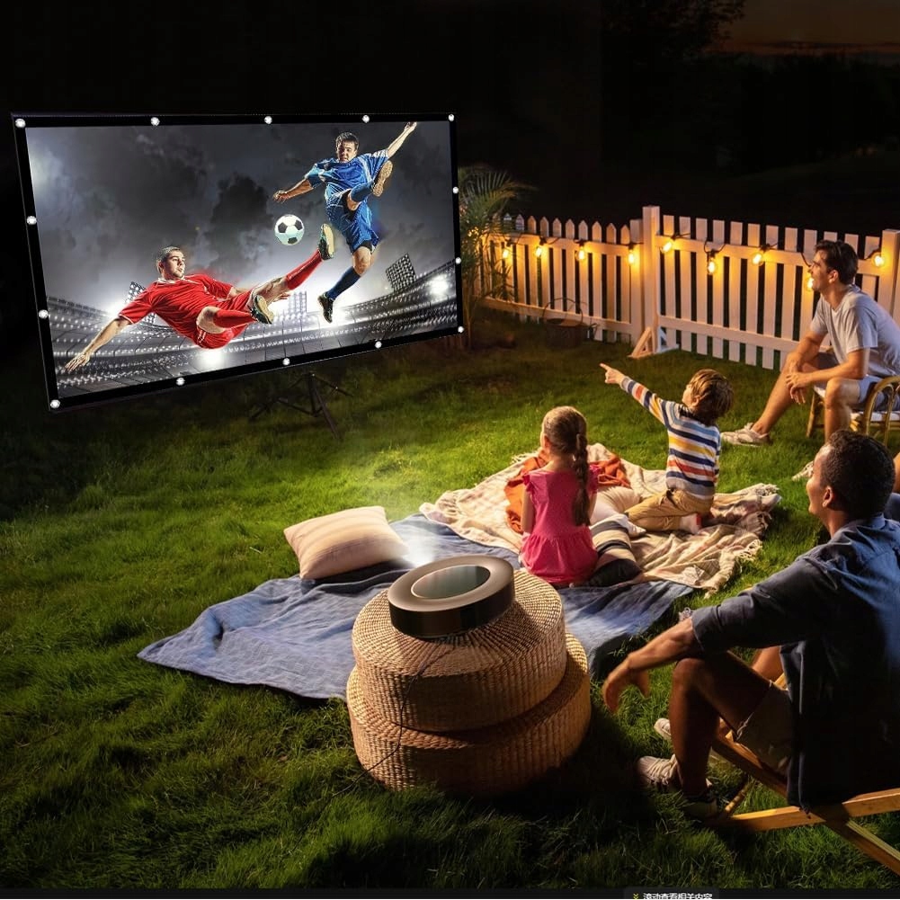 ☑️☑️Матеріал: цей 120-дюймовий екран проектора використовує матеріал із поліефірного волокна, який забезпечує чіткіші зображення, яскравіші кольори та відсутність відтінків. На екрані не буде плям, які могли б вплинути на ваше візуальне враження, і він достатньо товстий, щоб ви не могли побачити, що за ним.