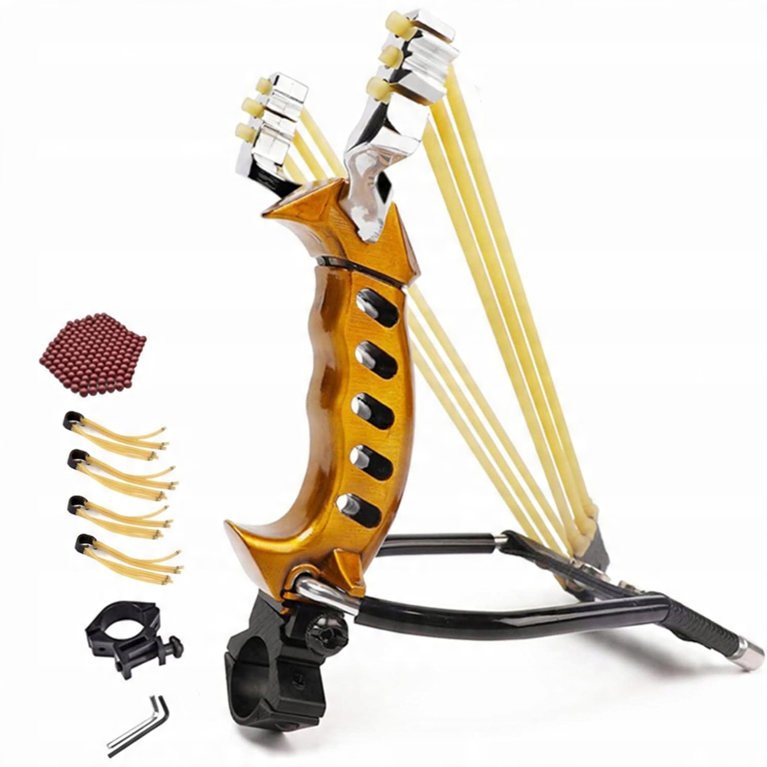 - Prca * 1 - запасний ремінь * 4 - стрілянина * 4 - сталевий мармур * 100 - глиняна куля * 100 - комбінація ліхтарика * 1, покладіть 3 батареї AA для ліхтарика