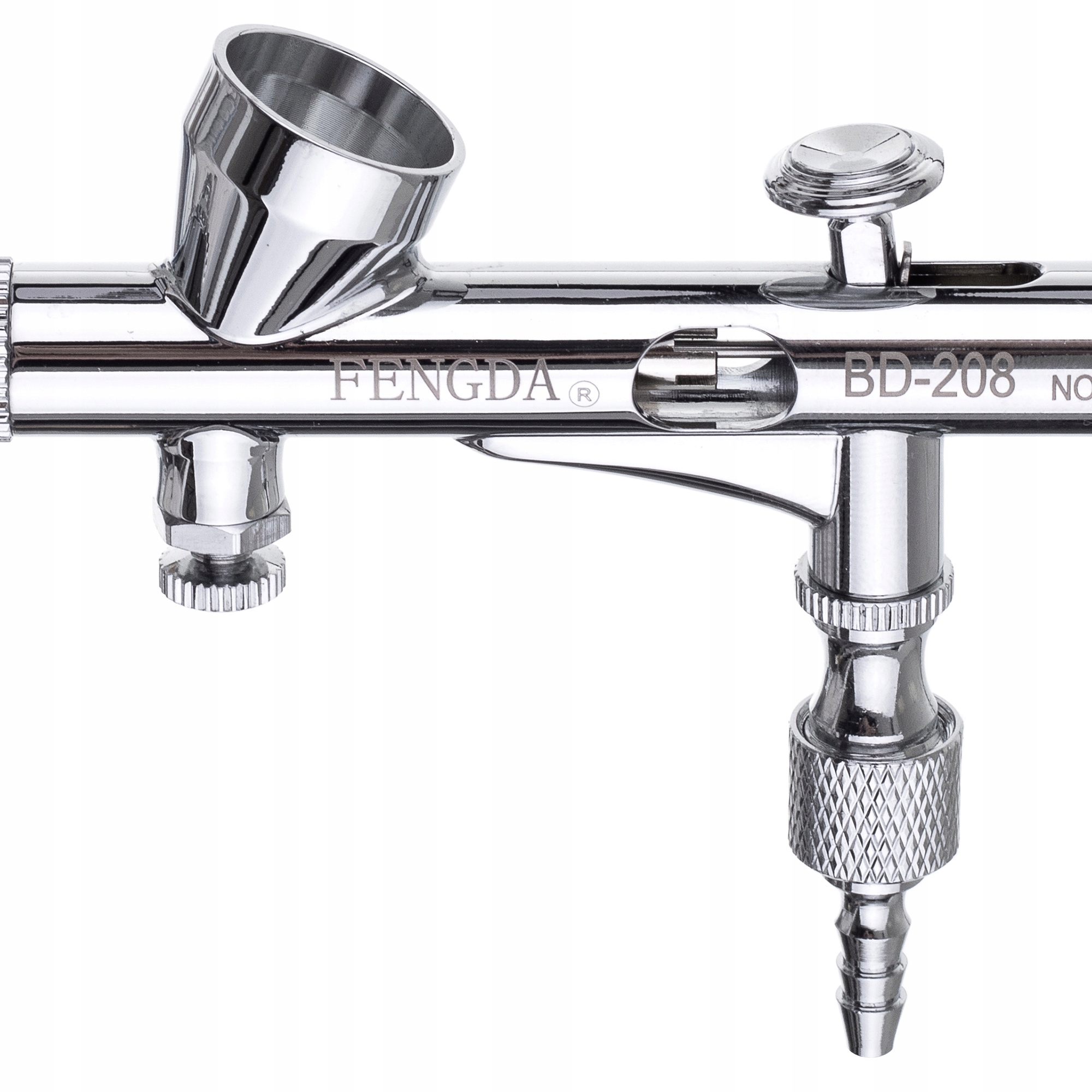 танк: аерограф K208 оснащений крихітним верхнім резервуаром, наповненим піпеткою. Тут ви можете знайти піпетки з фарбою. Він також працює в Body Paintig. робота. Він також оснащений зменшенням притисованого шланга