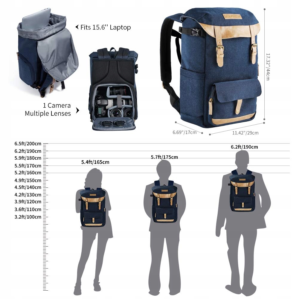 - Два окремі відділення - 29 x 17 x 44 см, приблизно 21 літр. Верхня кишеня використовується для зберігання різних особистих речей, таких як одяг, гаманець, мобільний телефон або флеш-пам'ять. Нижнє відділення для зберігання камери, 3 стандартних об’єктивів та інших аксесуарів (наприклад, фільтрів, акумуляторів або карт пам’яті).