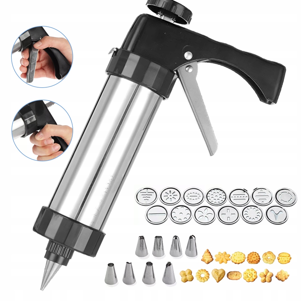 Просто заповніть тістом, покладіть форму на гайковий диск, затягніть її і натисніть ручку. Усі частини пресу печива видаляються і не можна промивати в посудомийній машині; Просто промийте водою. Діти можуть використовувати набір печива під наглядом дорослої людини. Ідеально підходить для початківців та досвідчених професіоналів.