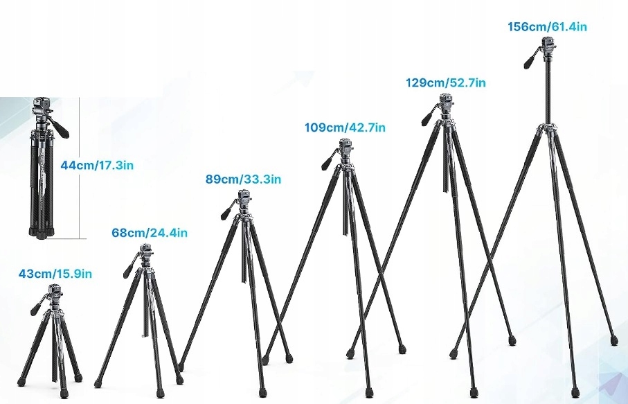 - Висоту штатива можна плавно регулювати від 43 до 156 см