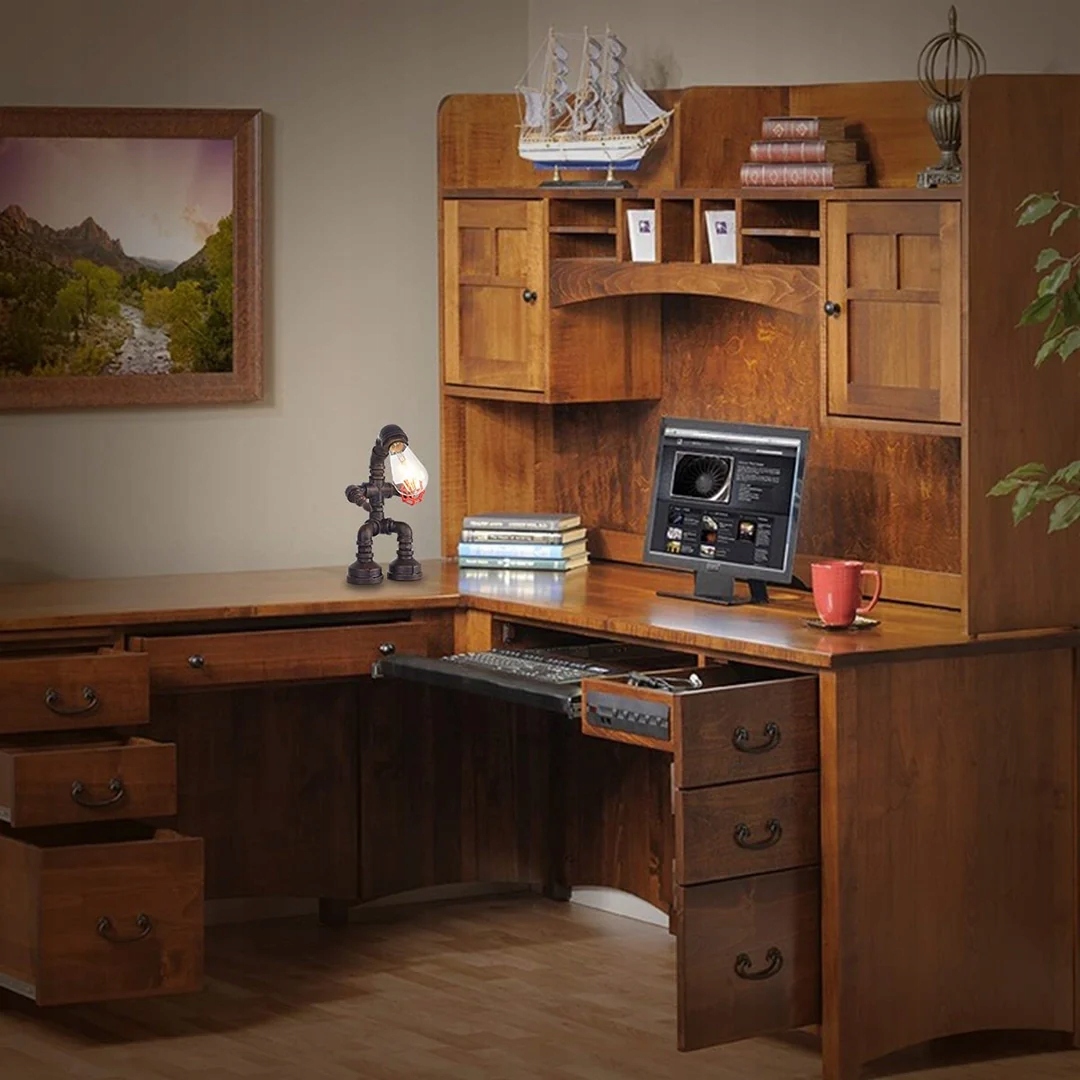 Зроблено з справжніх металевих труб і клапанів, з лампочкою, стилізованою для ретро (лампочка Едісона) - схоже на невеликий робот або сантехніку, що прийшло висвітлити ваш день. Червона ручка клапана додає контраст і атмосферу прямо з заводу з початку 20 століття.