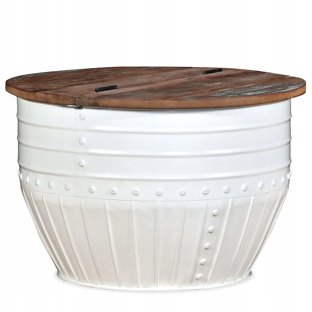 Відкрийте Унікальний журнальний столик у промисловому стилі, який стане позачасовим елементом вашого інтер’єру. Його унікальна основа у формі бочки, виготовлена з білої, порошкової сталі, надає йому унікального характеру.