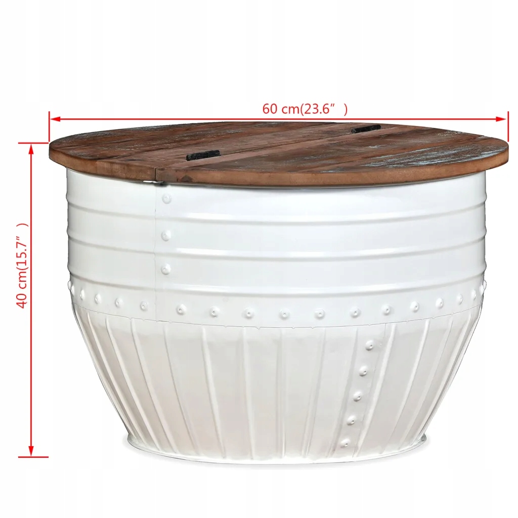 промисловий журнальний столик з основою бочки, 60x40 см, білий