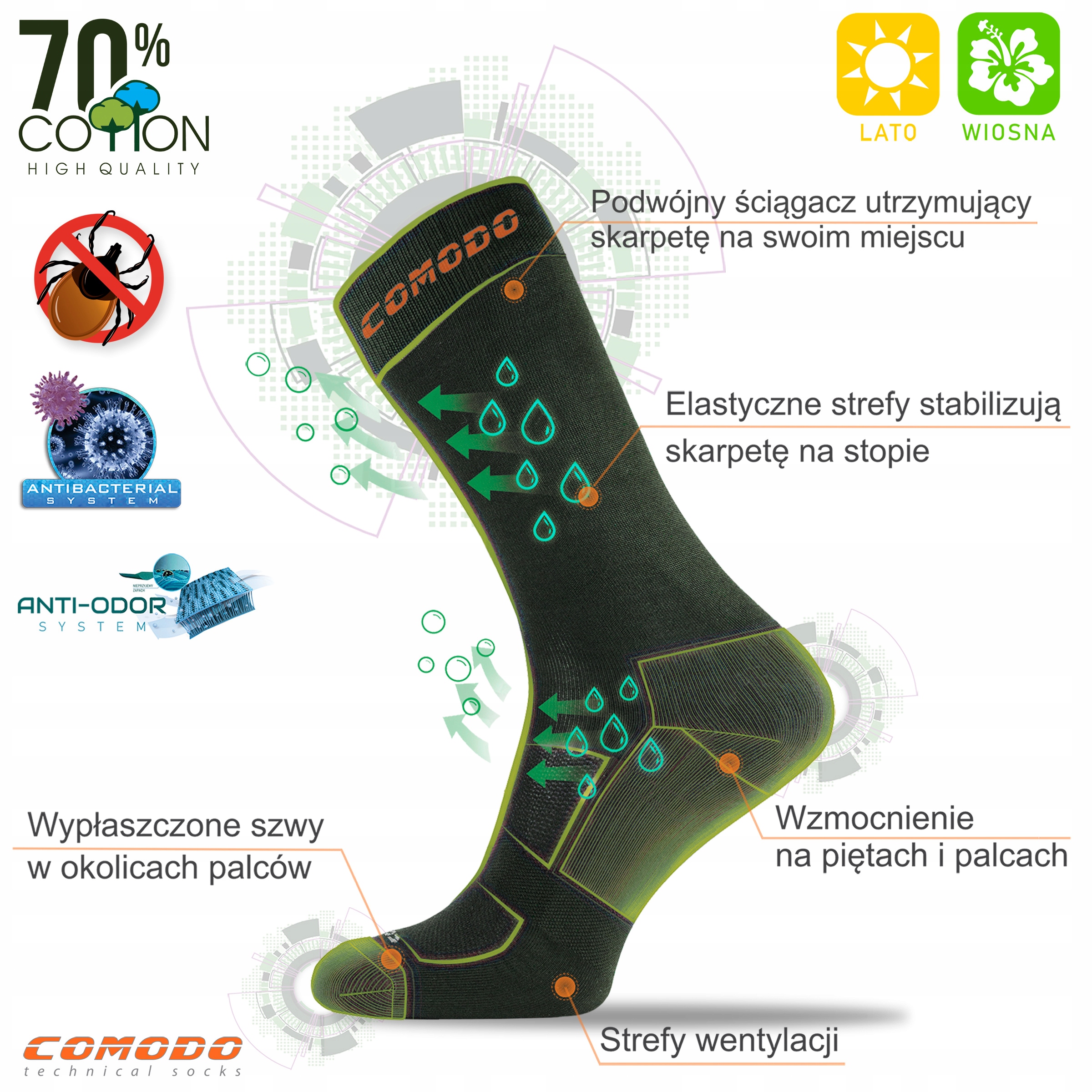 Мисливські шкарпеткиComodo SMP2 призначені длязахисту від кліщів і комах у весняно-літній період