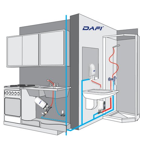 DAFI успішно замінює системи опалення, використовуючи потужні або проточні нагрівачі значно більших розмірів і потужності.