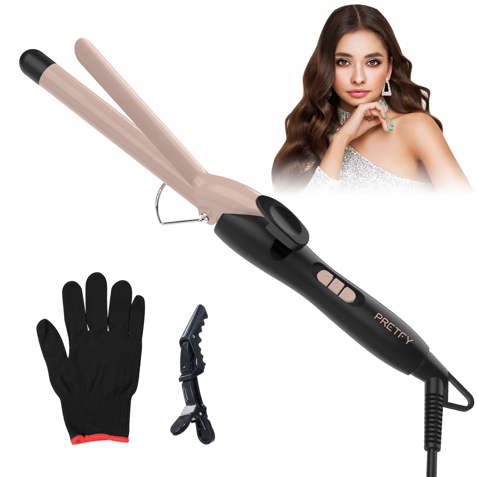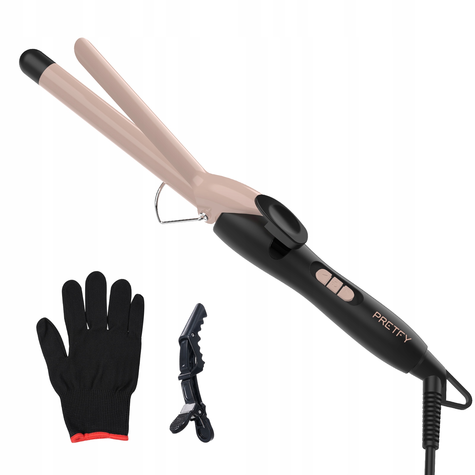 【Керамічна та негативна технологія іонного покриття】: Світло -рожева гаряча бочка з завивної палички потрійно керамічне покриття на бочці призначене для усунення статичної електрики, зменшення Frizz та захисту волосся від пошкодження тепла при додаванні блиску.