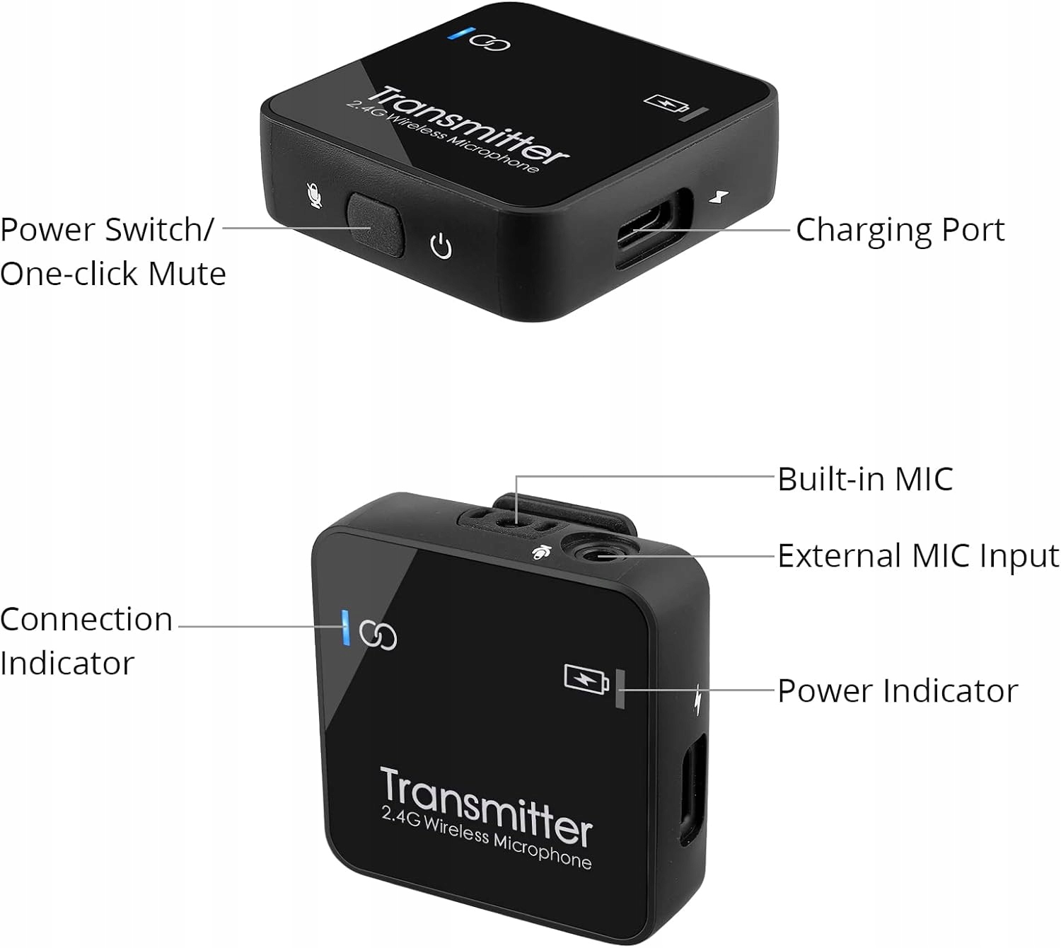 - 【Відмінна якість звуку】 Продукт призначений для професійної індустрії відео. Передавач має побудований мініатюрний мікрофон, високоондійний 360 °, висока чутливість та надвисокий звуковий прийом, непрохідна передача передачі звуку класу без затримок, забезпечуючи більш високу якість звуку.