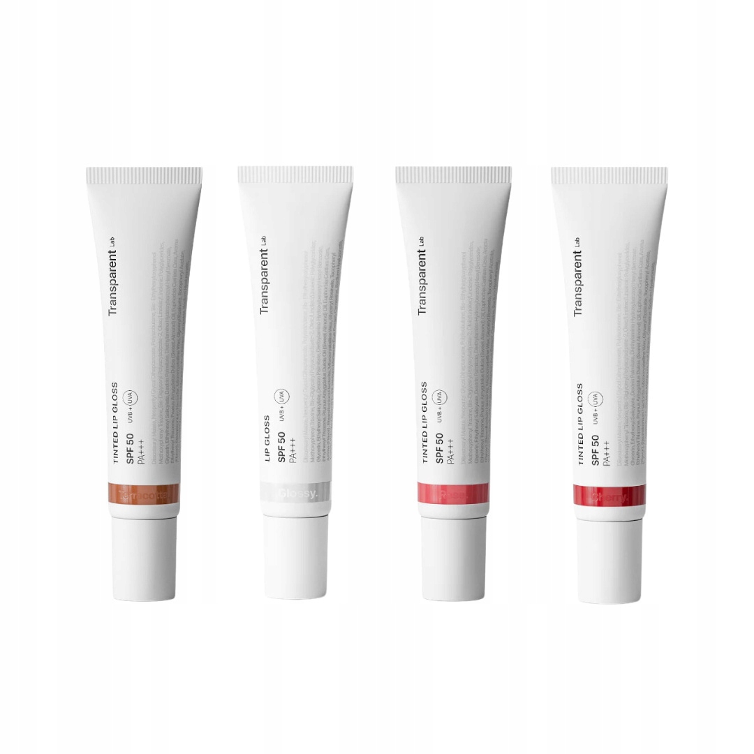 Прозора лабораторія На комплекті для губ є набір з 4 блискавки для губ, які поєднують захист від УФ -випромінювання, гідратації та тонких кольорів.