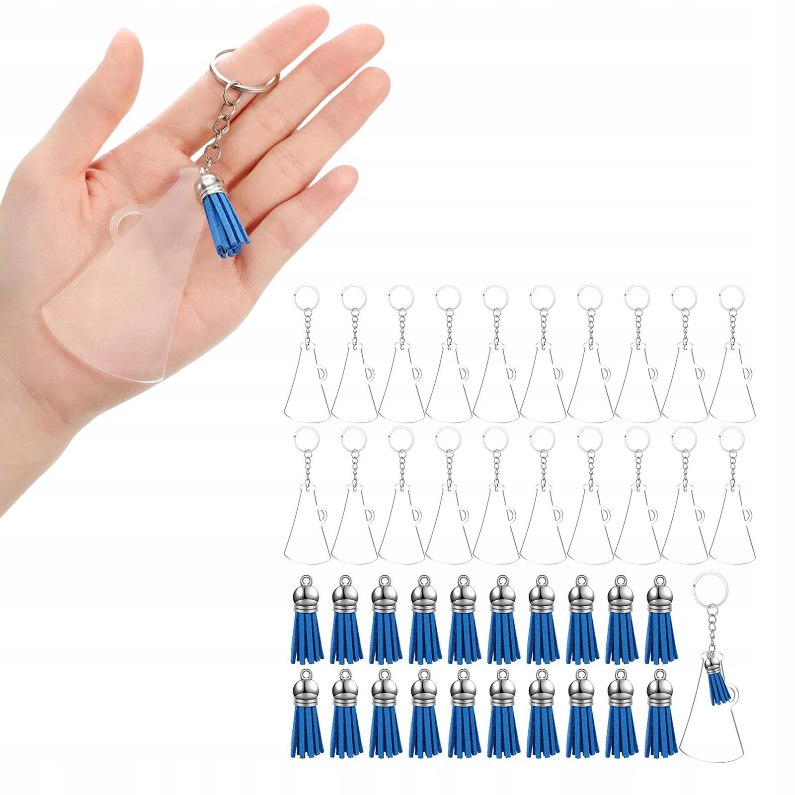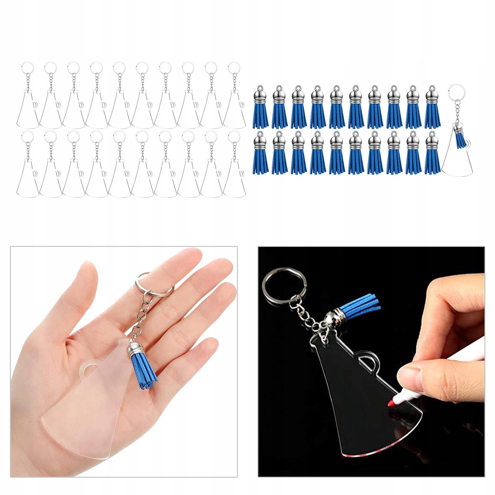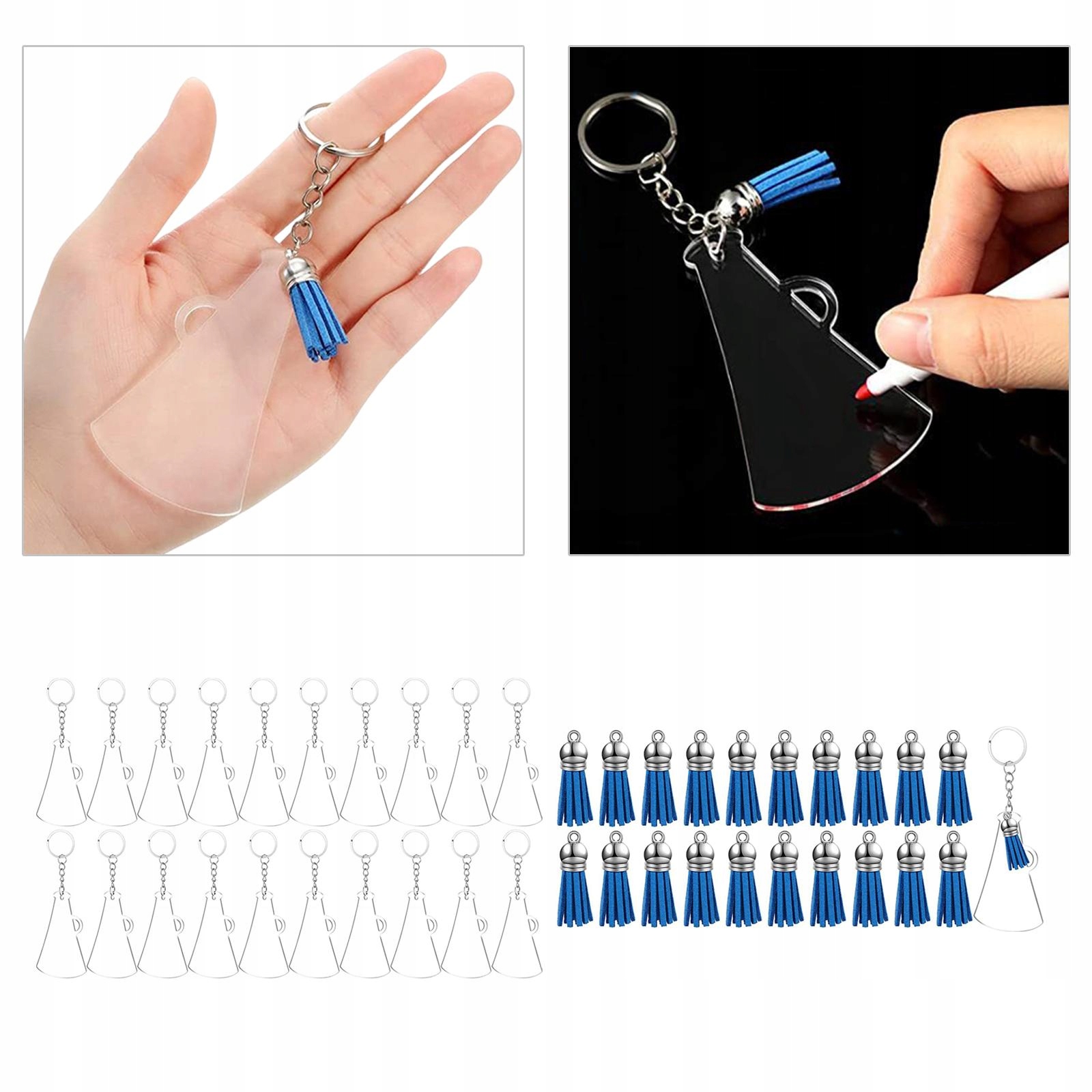 Набори для виготовлення брелоків: набір акрилових брелоків включає 20 частин прозорої акрилової заготовки, 20 частин китиць, 20 частин брелоків і 20 частин стрибаючих кілець. Ідеально підходить для проектів ручної роботи, DIY та виготовлення брелоків.