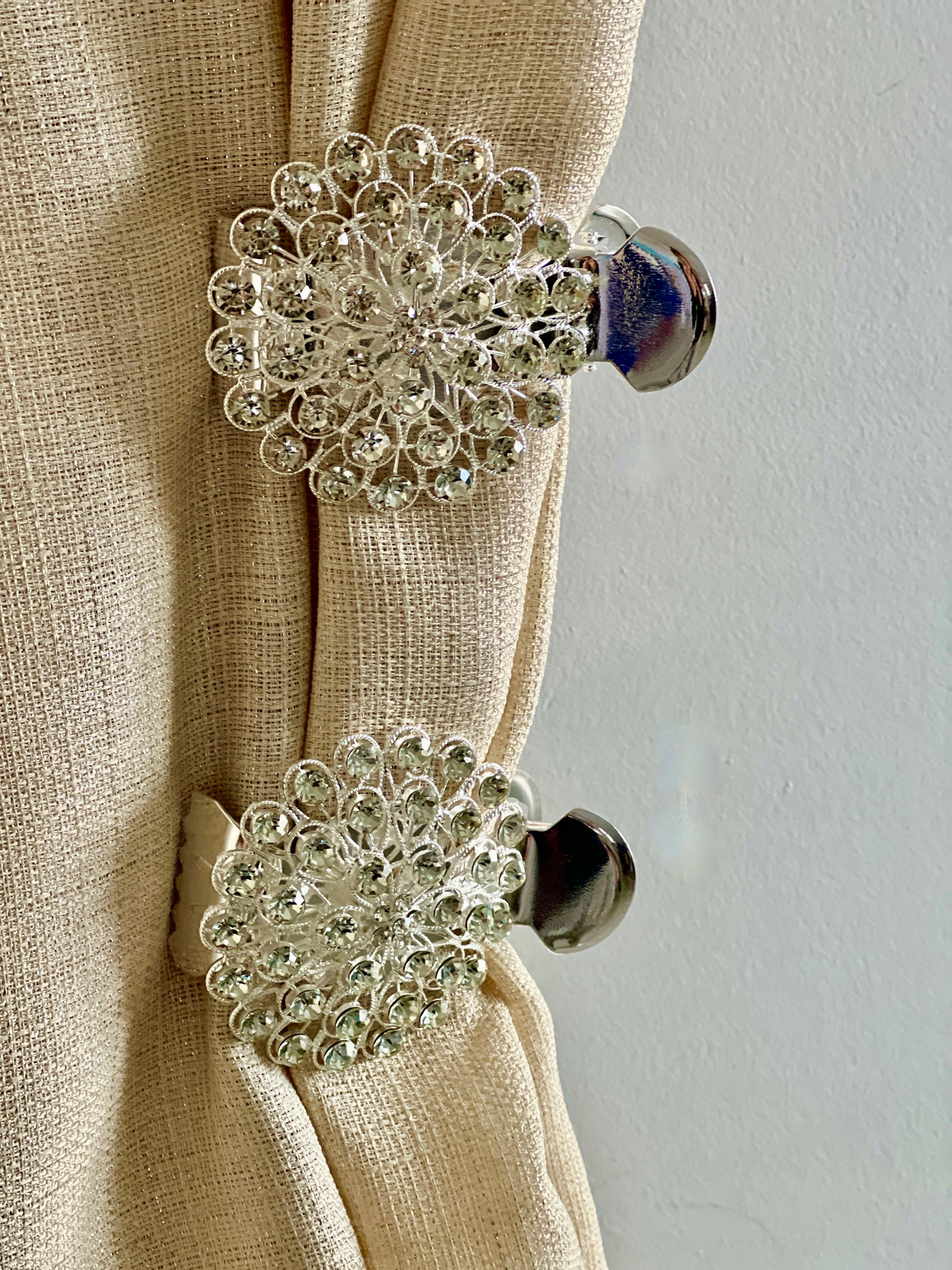 ПРЯЖКА КАПКА ВЕЛИКИЙ СРІБЛИВИЙ ЦИРКОНІЙ ШТОРА ОРНАМЕНТ ДЕКОРАЦІЯ ШТОРИ РУЧКА