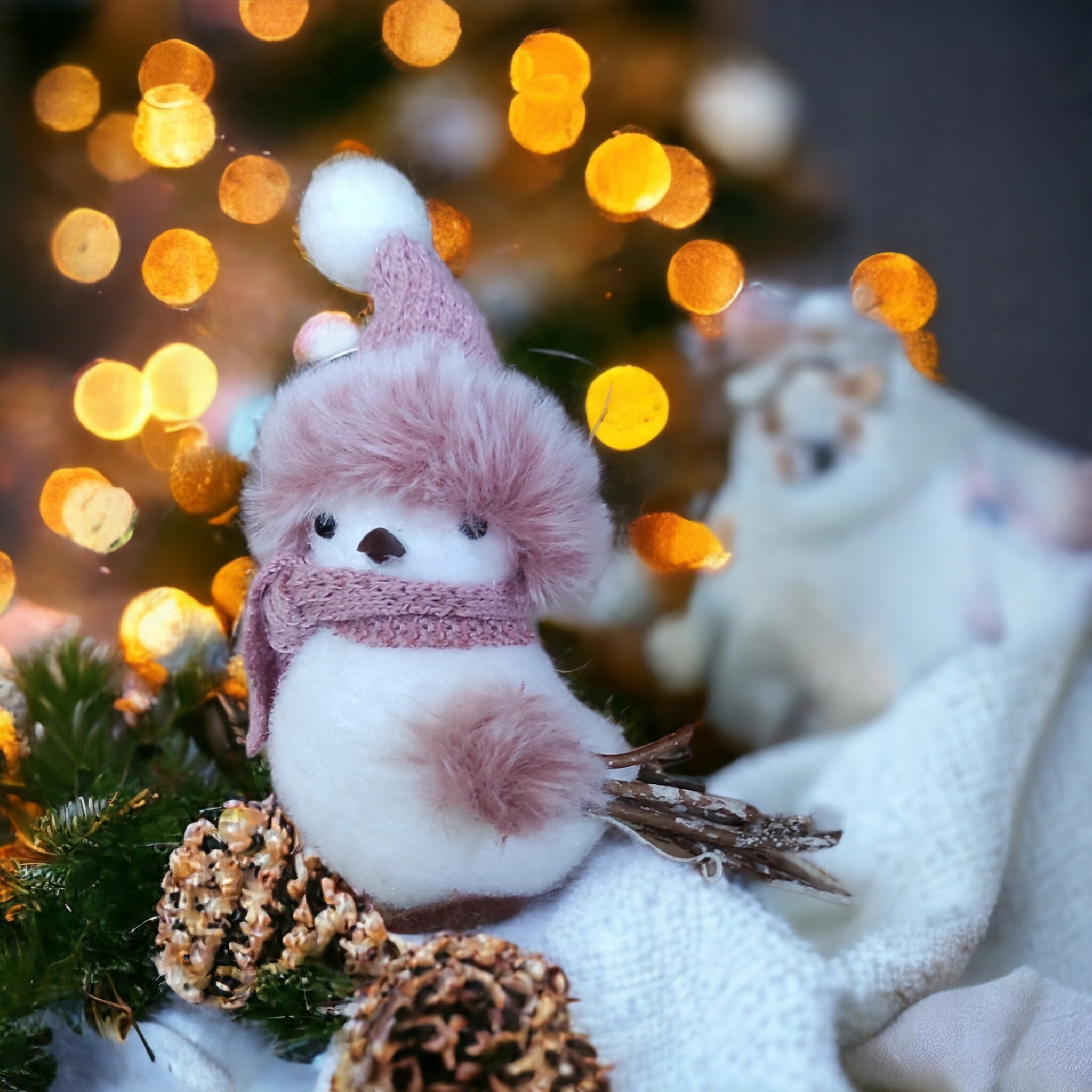 Птах, великий, 13 см, фігурка птаха, декор, фетр, хутро, гілочка, вінок, рожевий
