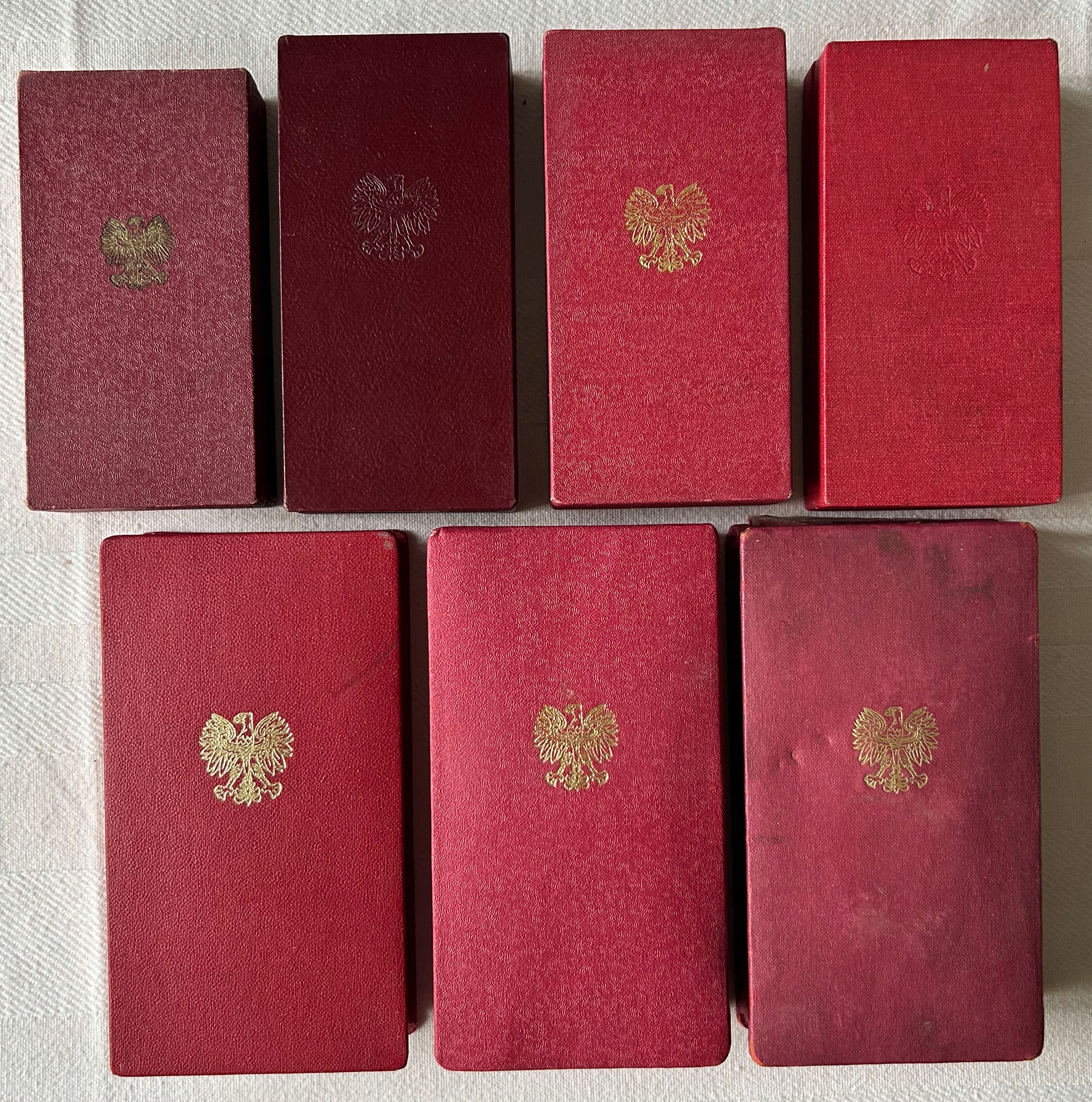 Pudełka na odznaczenia PRL - 7 sztuk - komplet. W tym 3 na krzyże OOP