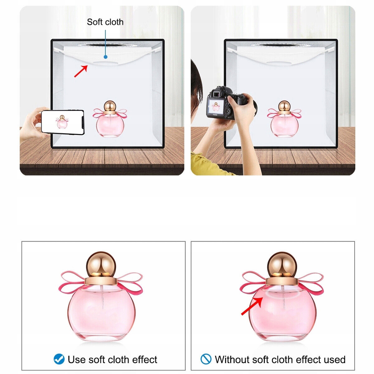 Ви часто робите фотографії зі смартфоном? А може, ви використовуєте камеру? Пузирний намет басейну працюватиме майже в будь -якій ситуації! Ви також можете сфотографувати з різних точок зору - попереду чи заздалегідь, через додатковий отвір. Комплект також включає спеціальну м'яку тканину, яка сприятиме фотографуванню предметів, що сильно відображає світло. Всередині намету є світловідбиваюча тканина, яка забезпечує навіть відволікання на освітлення.