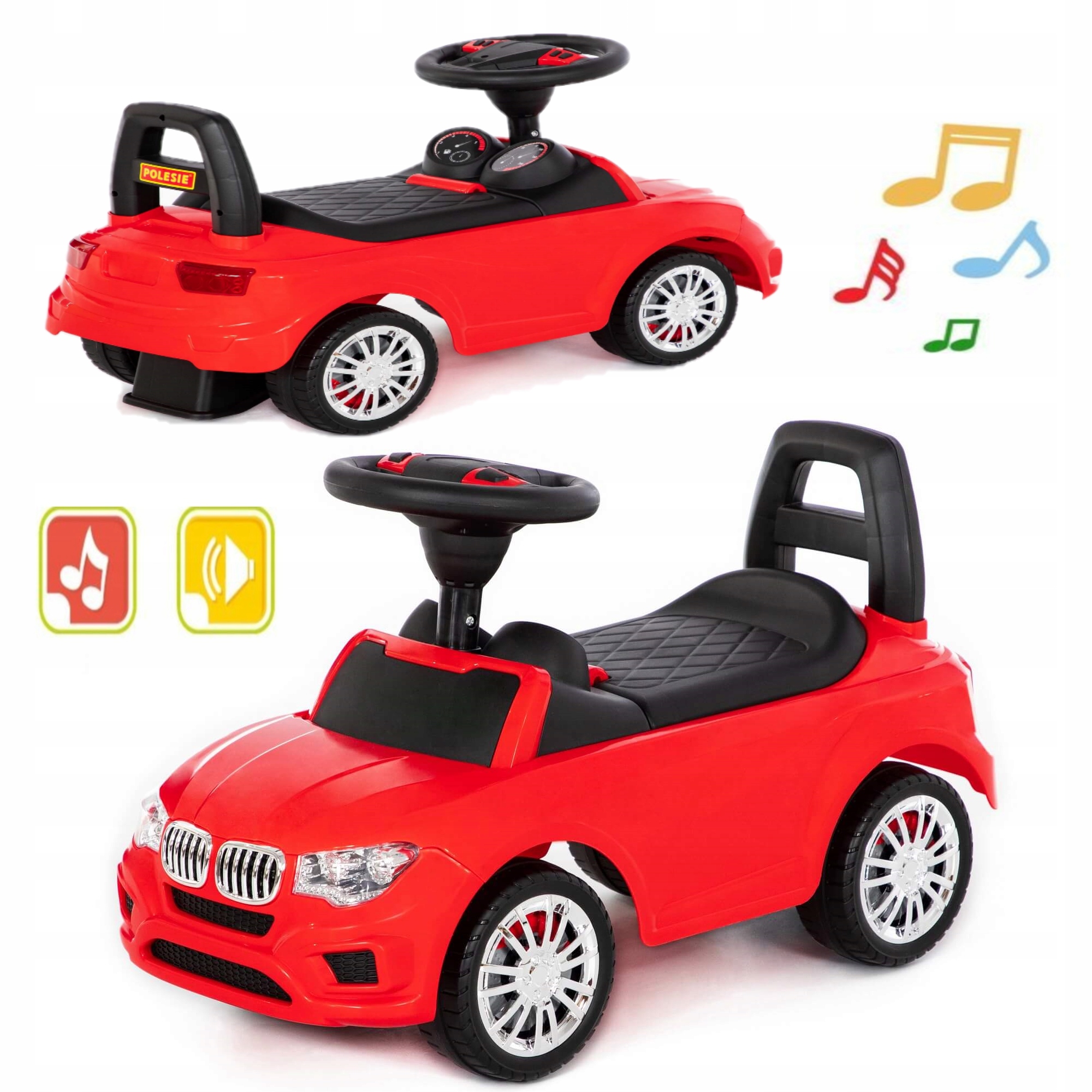 Super Car Ride-On зі звуками Він має імітацію хромованих поверхонь, таких як диски , фари та решітка. Музичне кермо з клаксоном, звуком працюючого двигуна і сиренами (3 звукових ефекту). Під сидінням є відділення для зберігання необхідних маленькому водієві дрібниць. Super Car Ride-On росте разом з дитиною, автомобіль можна використовувати як катанку або штовхач, за допомогою якого дитина може вчитися ходити. Каталка оснащена широкими колесами і зручним кермом, профільоване сидіння, а спинка захищає дитину від перекидання назад.