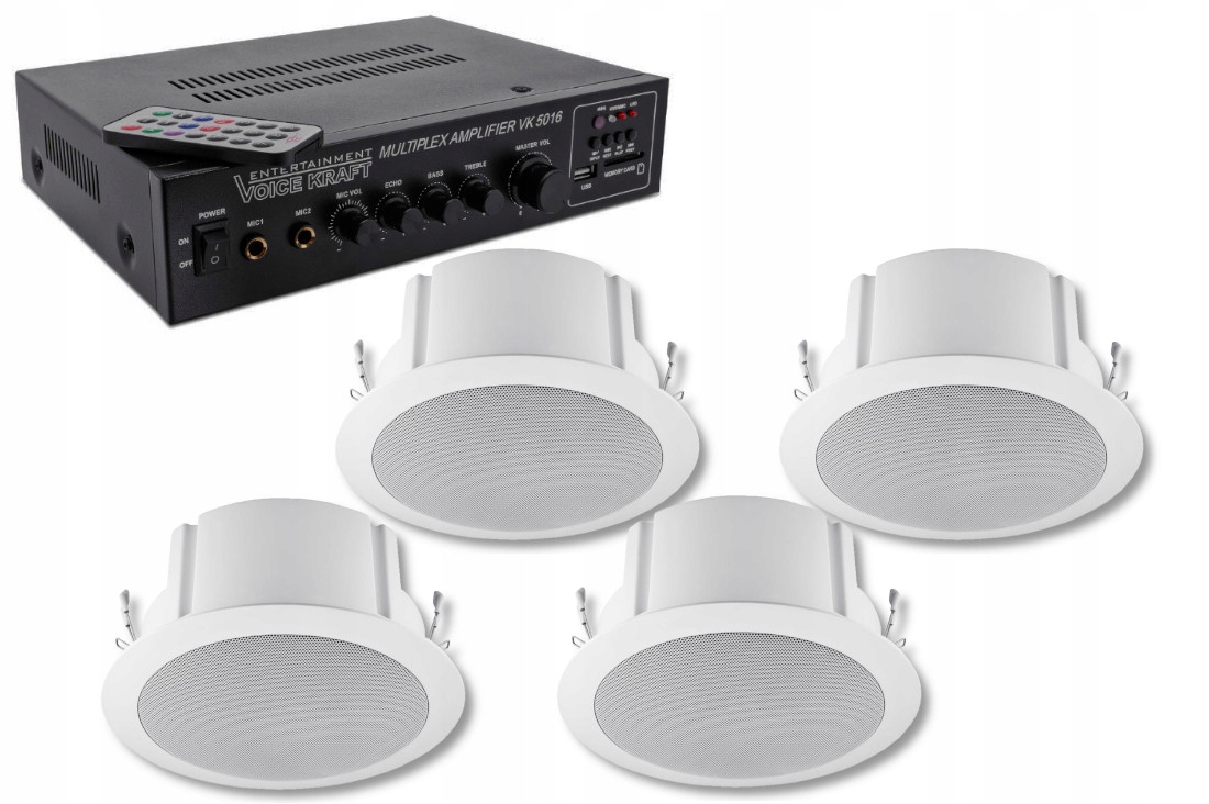 Підсилювач VK 5016 + чотири стельові колонки QC 60T