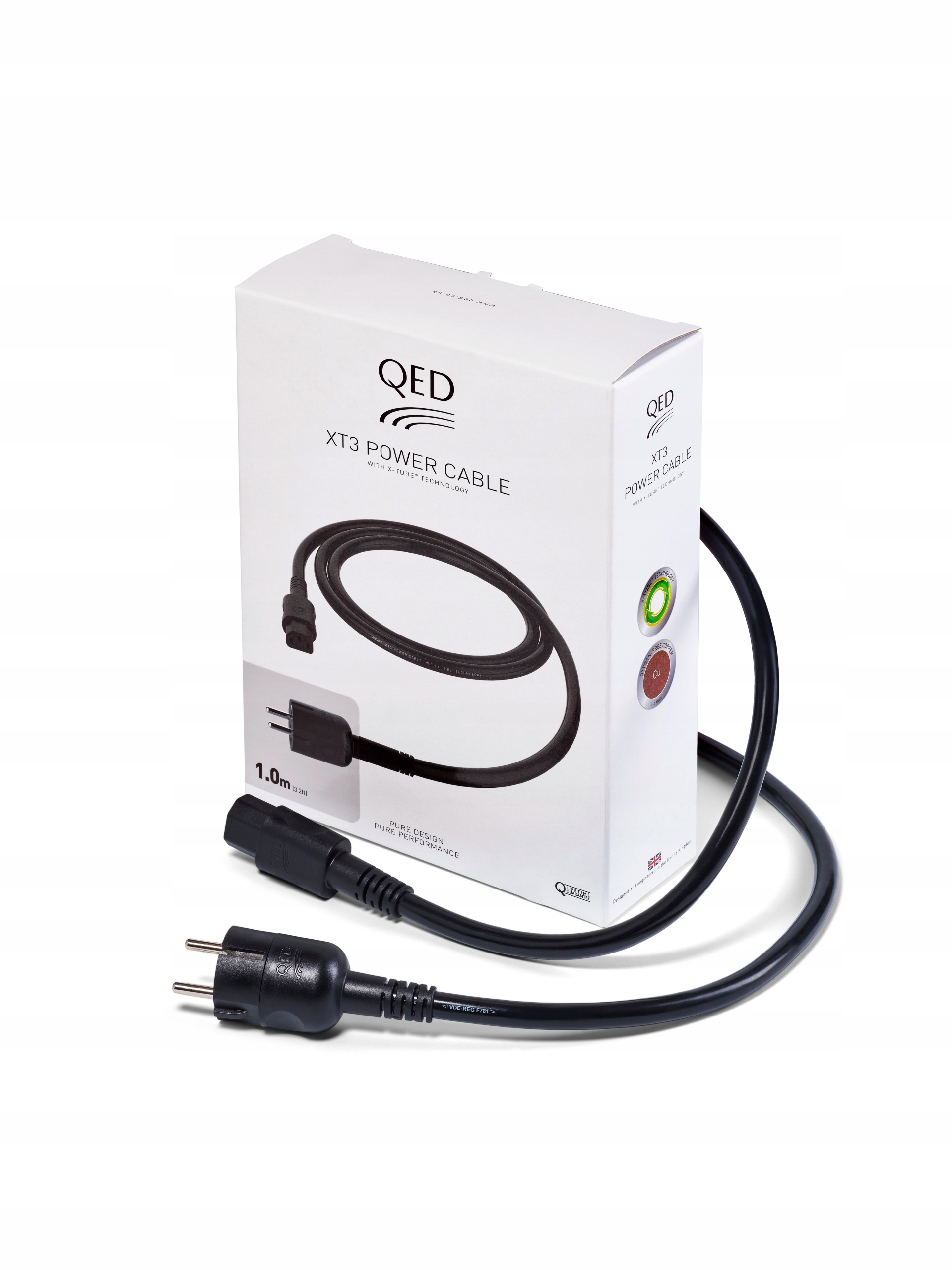 Кабелі живлення QED XT3 використовують спеціально адаптовану версію технології X -tube ™, подібну до тієї, яка використовується в наших кабелях динаміків, але спеціально трахкала, щоб вона була придатною для цього нового додатку. Гілки окремих вен в напрузі та нейтральних проводах досить невеликі, щоб вихрові струми з сусідніх вен не впливали на них, що сприяє утворенню безконтактного ефекту.