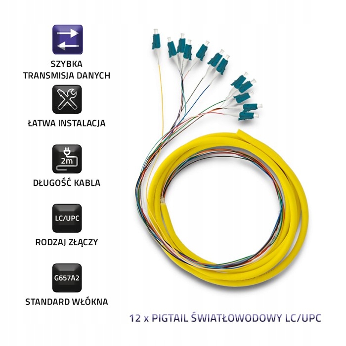 Qoltec 12 x LC/UPC волоконно -оптичний косичка Singlemode G657A2 | 2 м