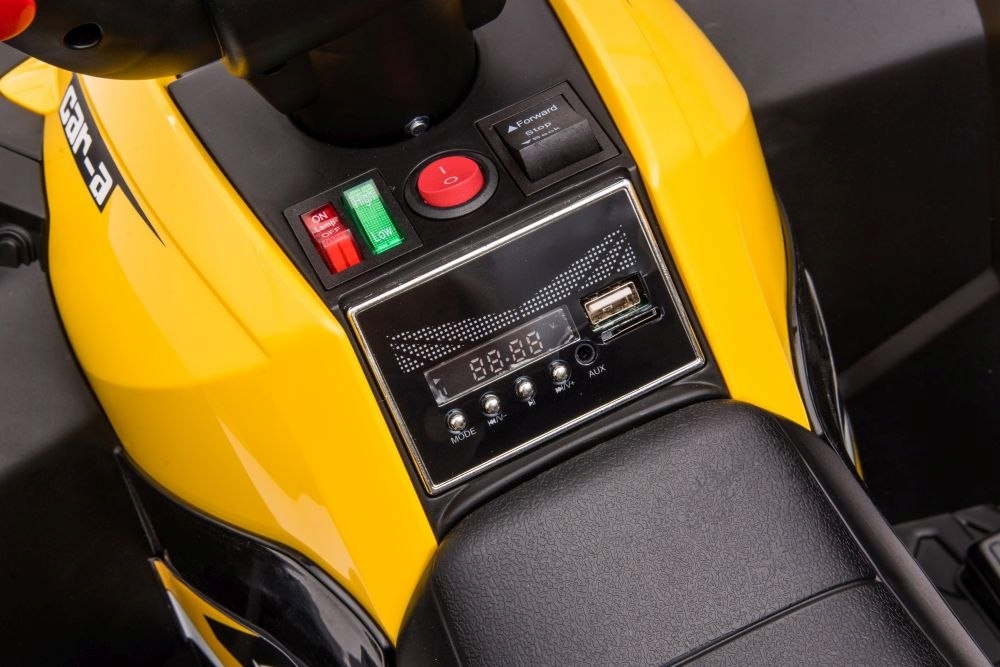 Вбудована музична панель з USB -введенням та функцією MP3 дозволяє дитині слухати улюблені пісні під час руху. Світлодіодні світильники, розміщені спереду, не тільки збільшують видимість, але й роблять транспортний засіб справді вражаючим - як справжній квадроцикл!