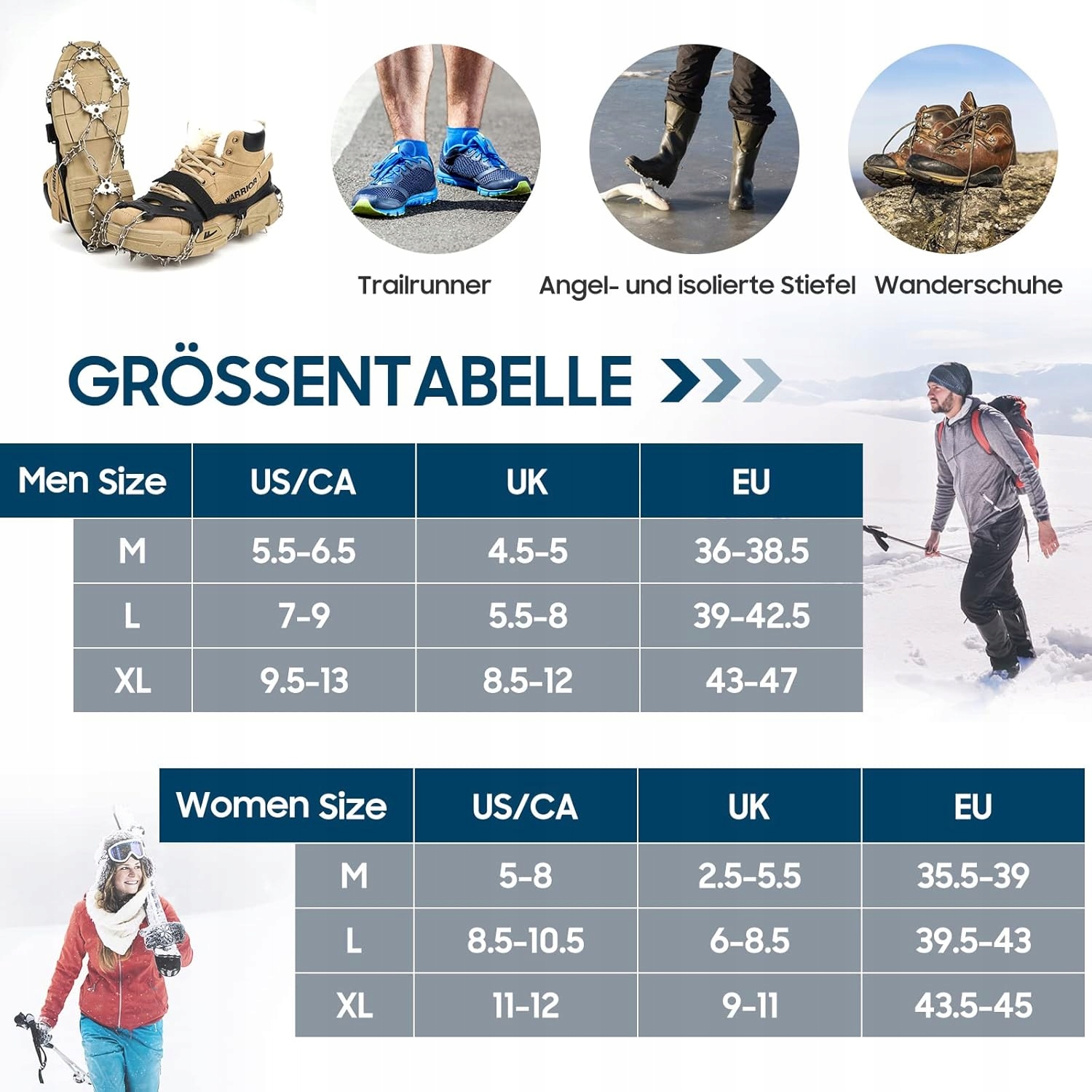 Приходьте на лід, сніг і складна місцевість! Раків Jatek - це вдосконалена версія з 24 зубами з нержавіючої сталі 304 , яка гарантує довговічність, безпеку та комфорт у всіх зимових умовах.